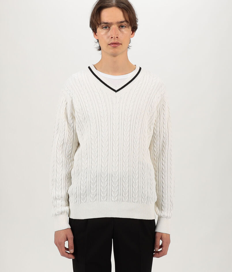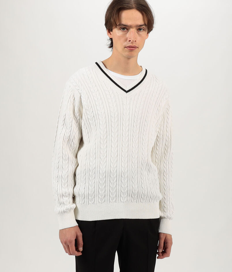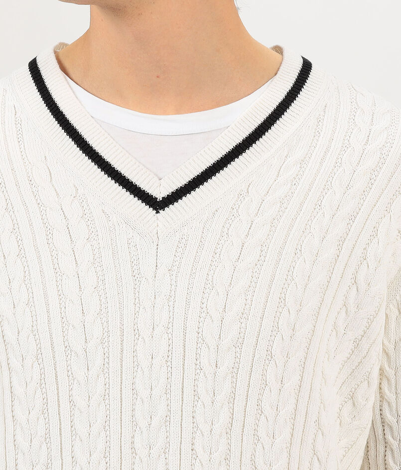 コットンケーブル Vネックニット