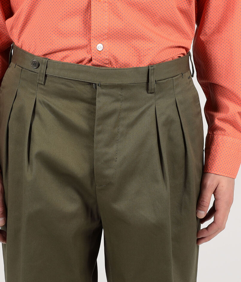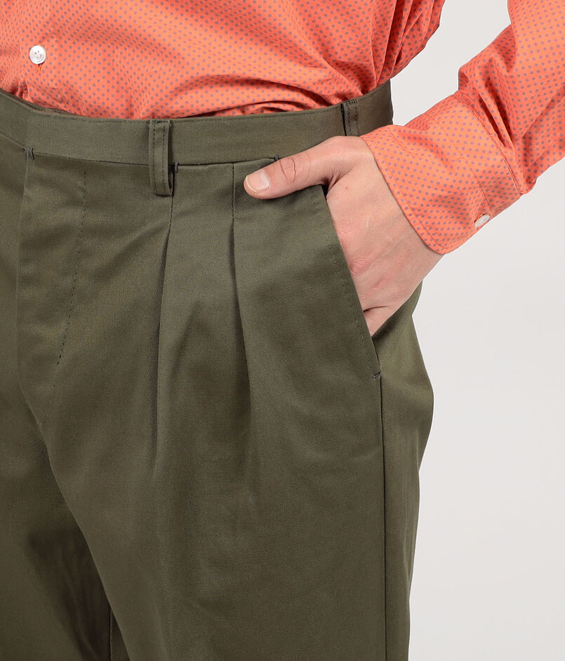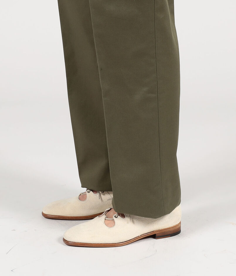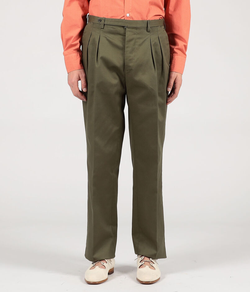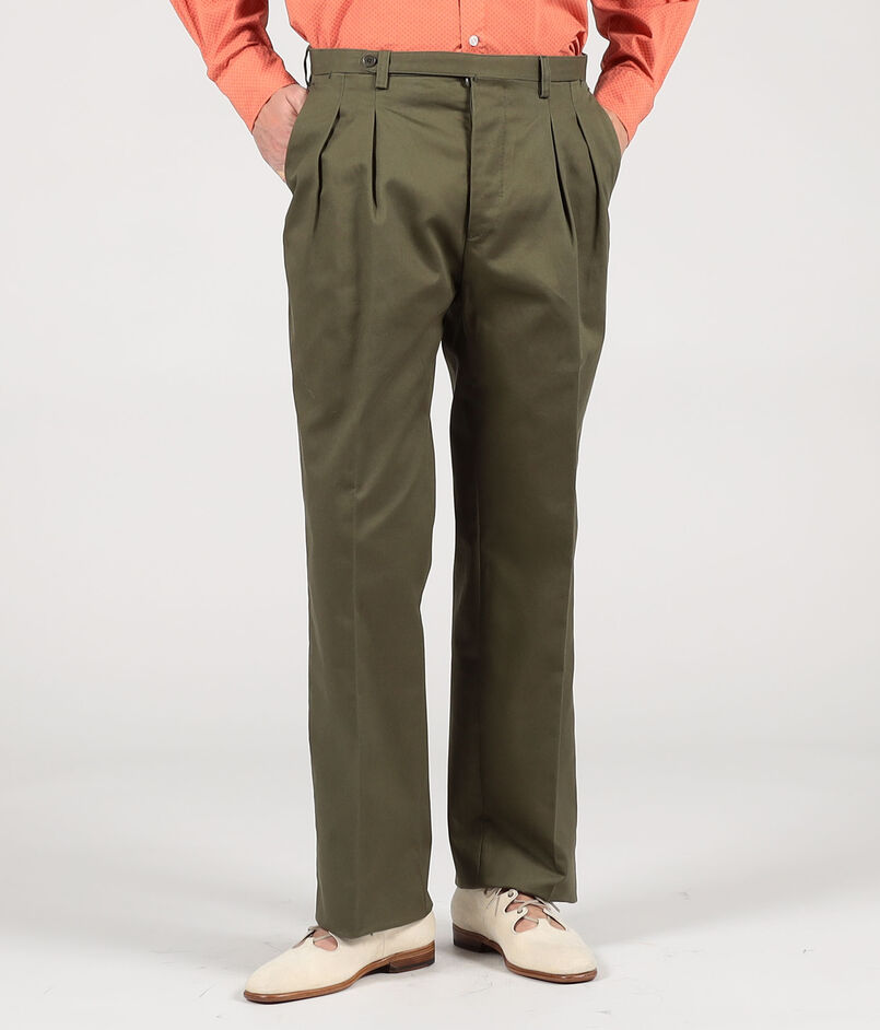 ナポリのテーラードファクトリーに生産を依頼した2プリーツのサルトリアルチノパンツ。