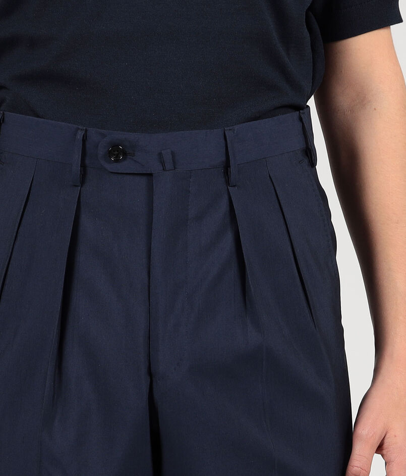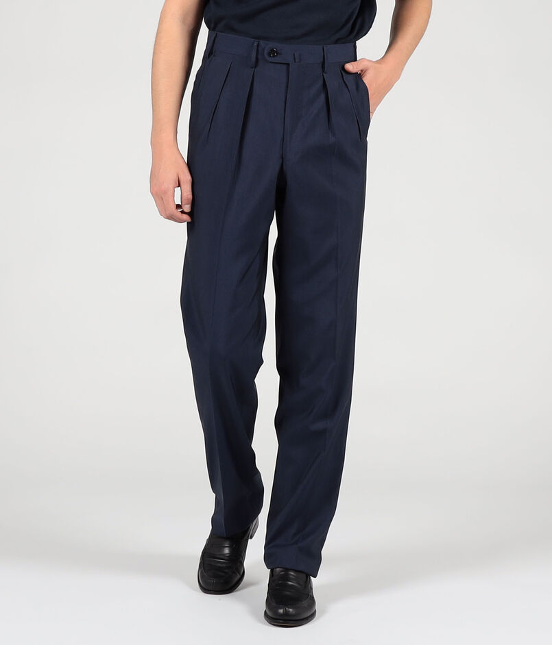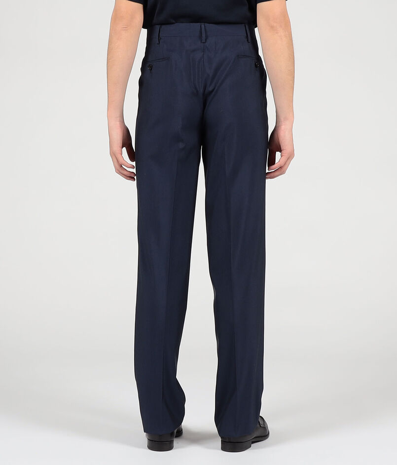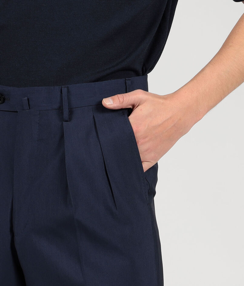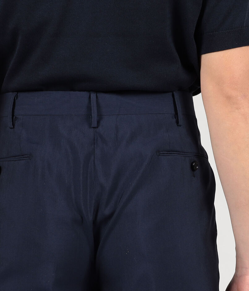 イタリアの大手サプライヤー〈MARZOTTO(マルゾット)〉社のウールシルク混紡の軽くて繊細な生地を使用したイン2プリーツのスラックス。