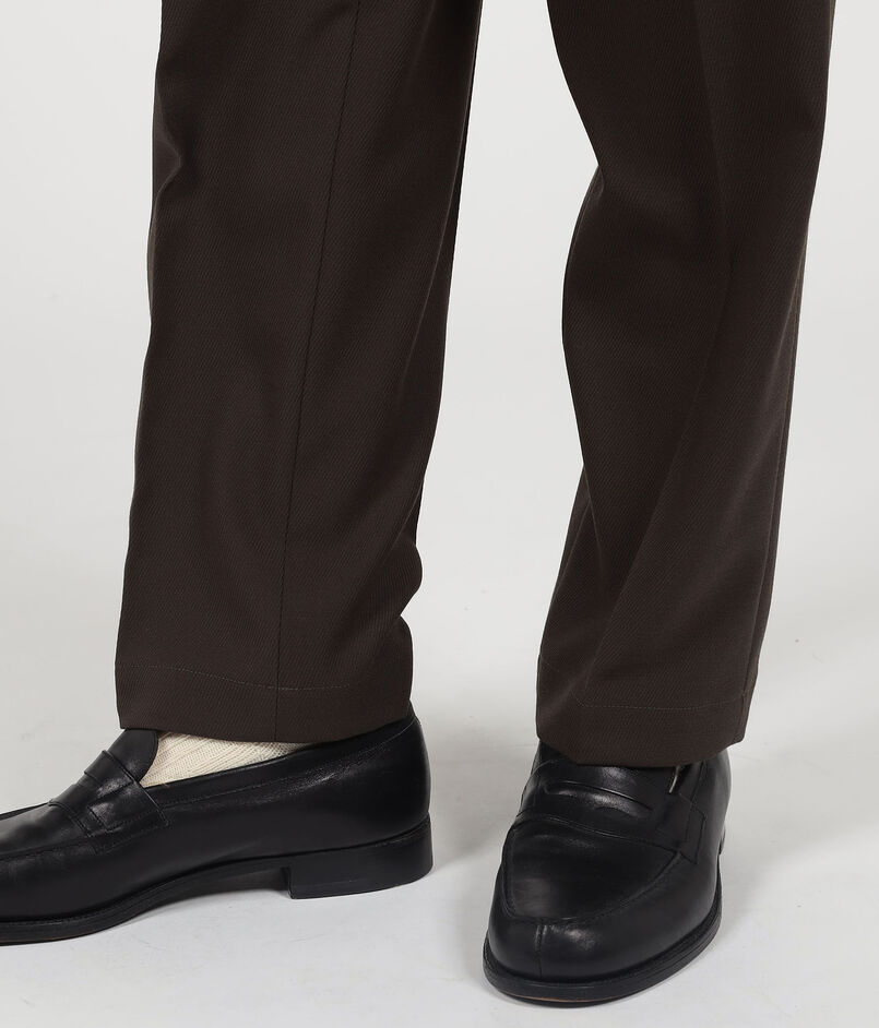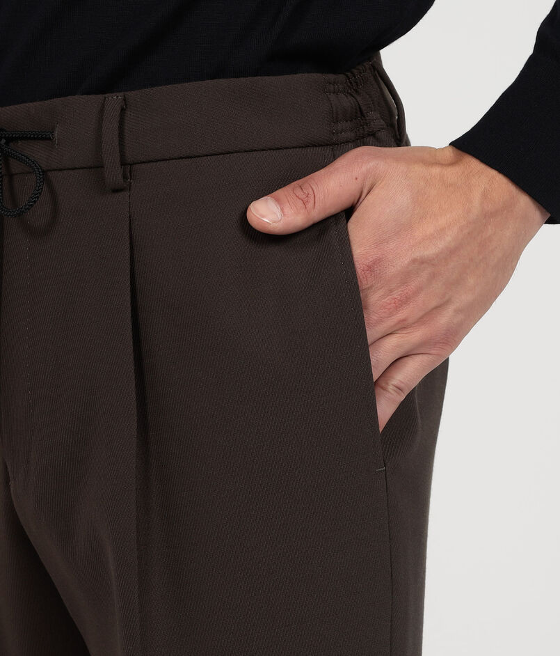 デザインは、適度にテーパードの効いた1プリーツのイージースラックスのコンフォートフィットモデル。