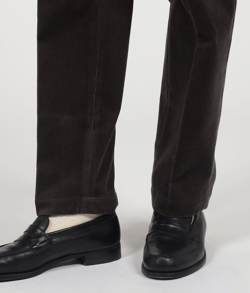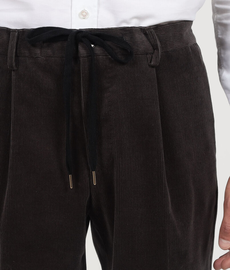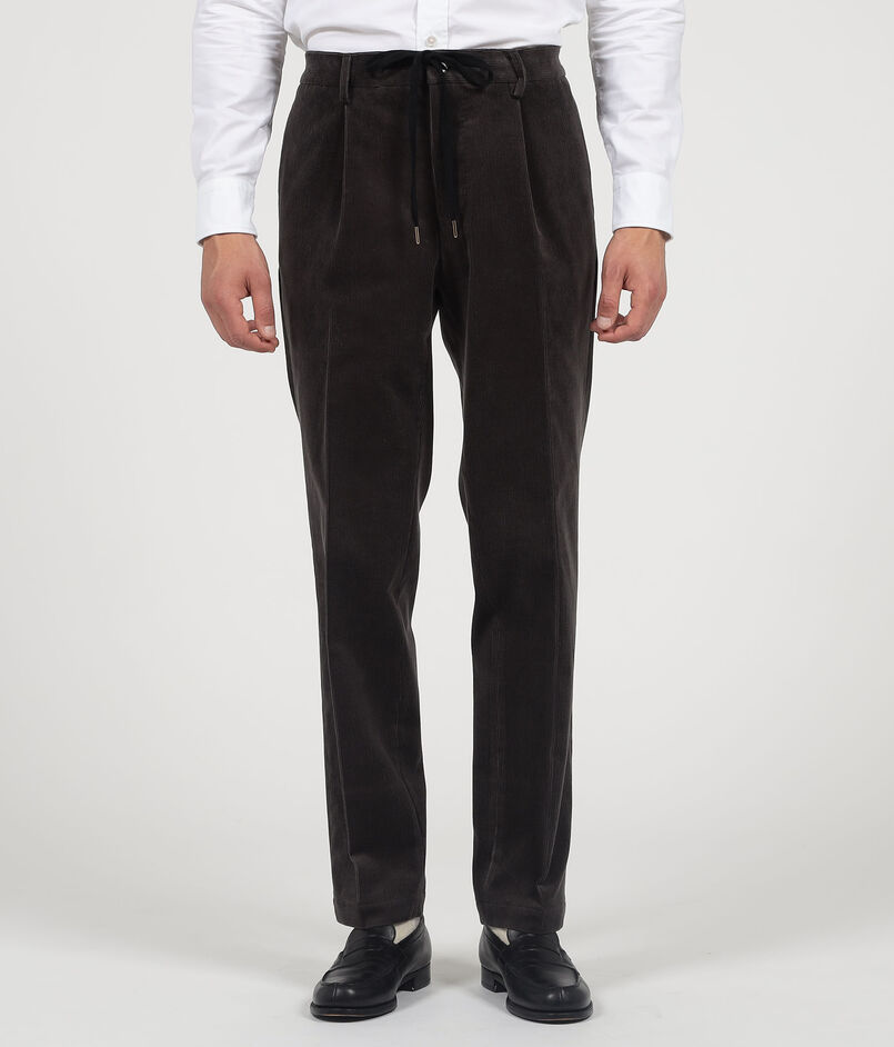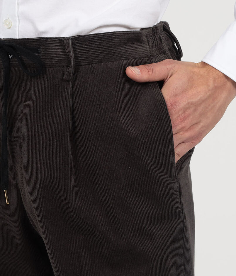 コットン、ウール混紡のストレッチコーデュロイ素材を使用したイージースラックス。