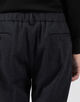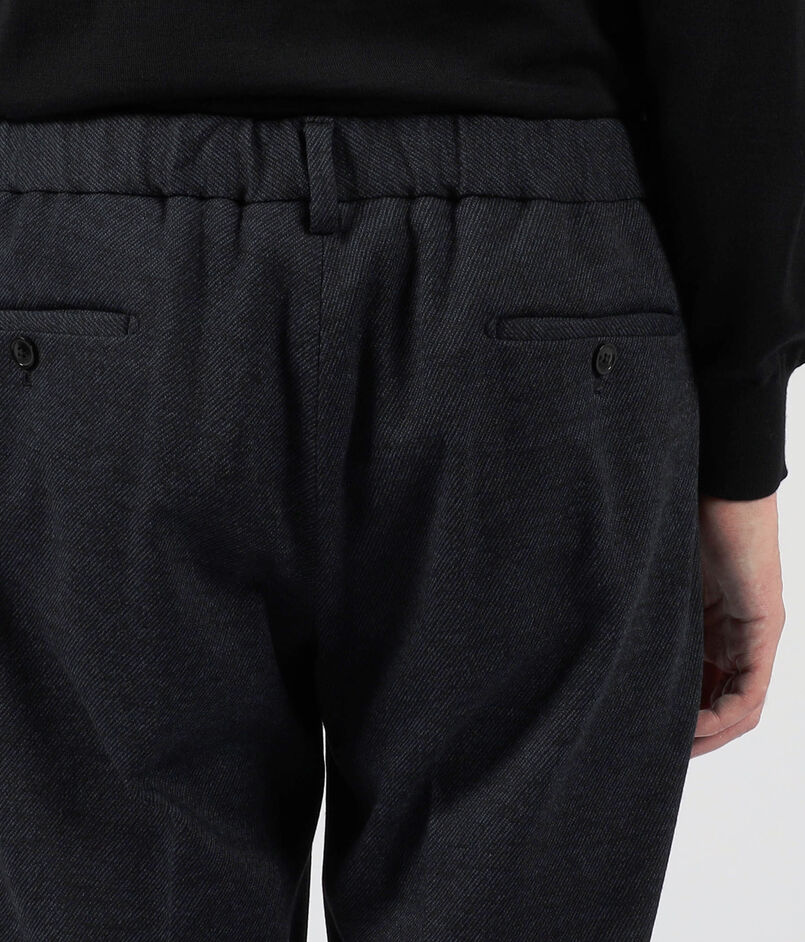 デザインは、ウエスト後部のシャーリングが特徴のイージーパンツ。