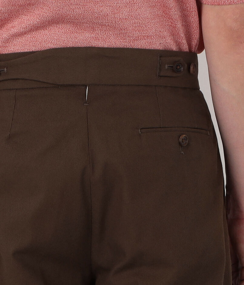 デザインはグルカパンツのウエストベルトデザインを、後ろ側に用いたカジュアルスラックス。