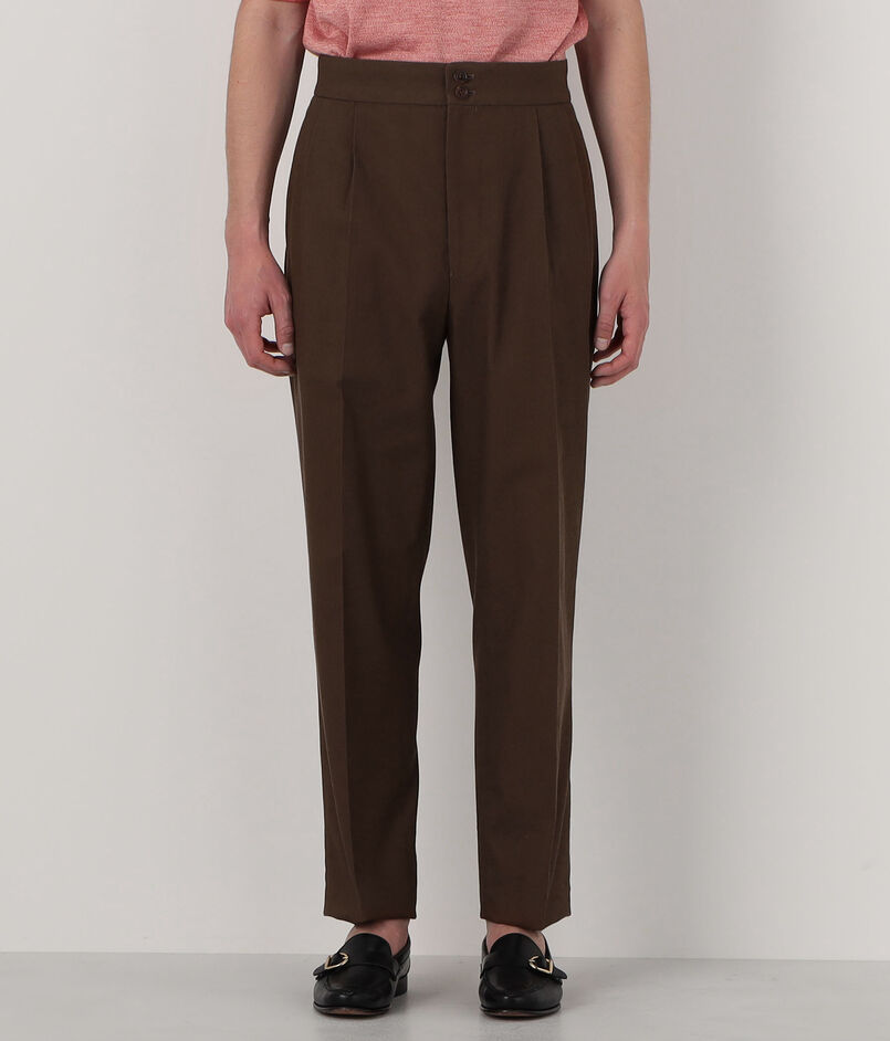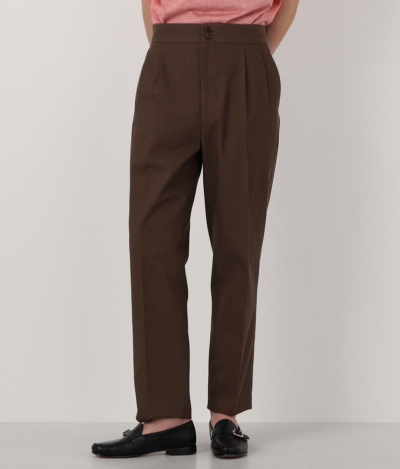 伊〈 SONDRIO(ソンドリオ) 〉社のコットンカルゼ素材を使用した〈PILGRIM〉レーベルのスラックス。