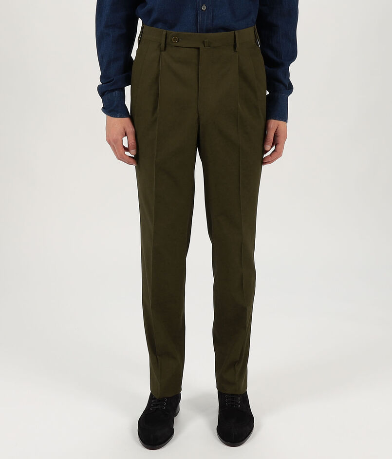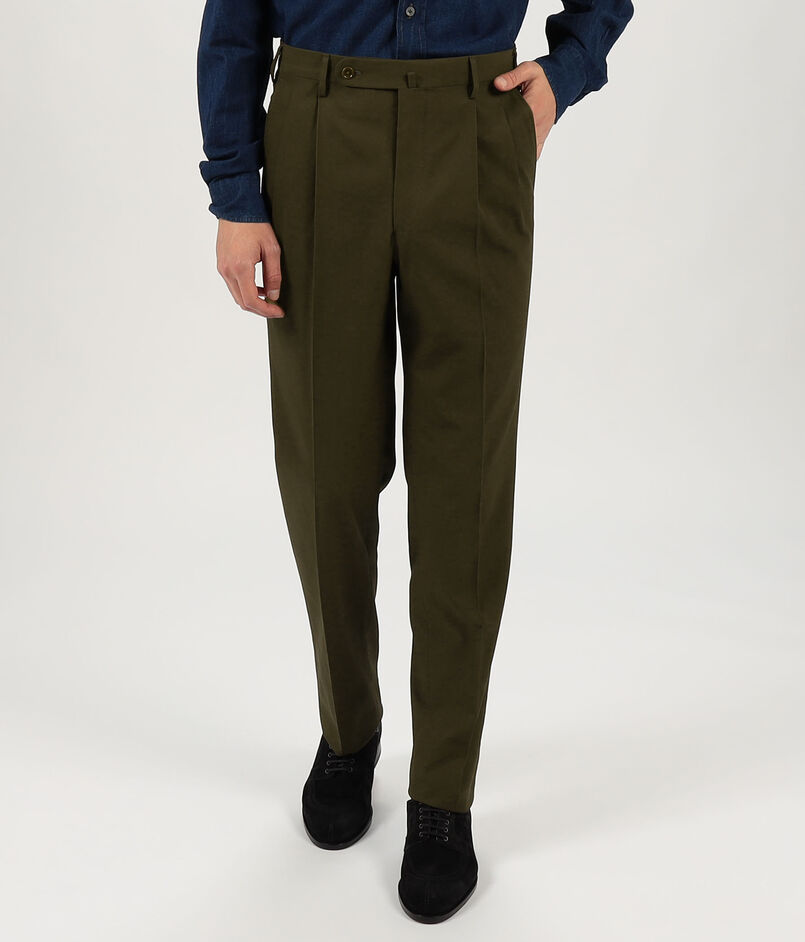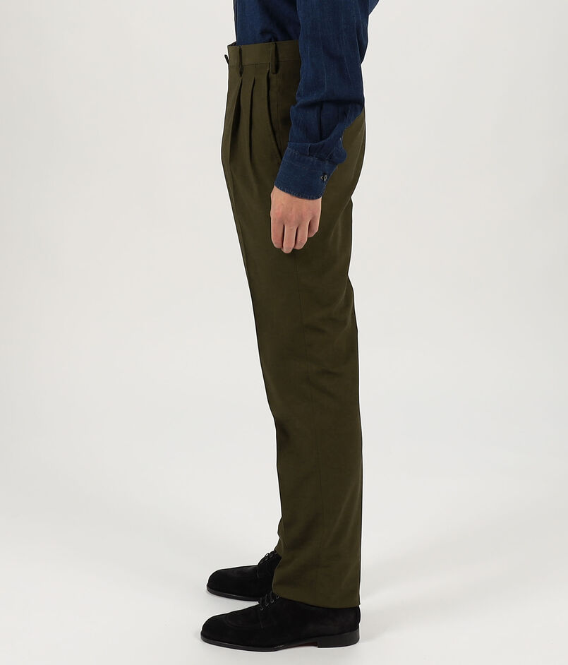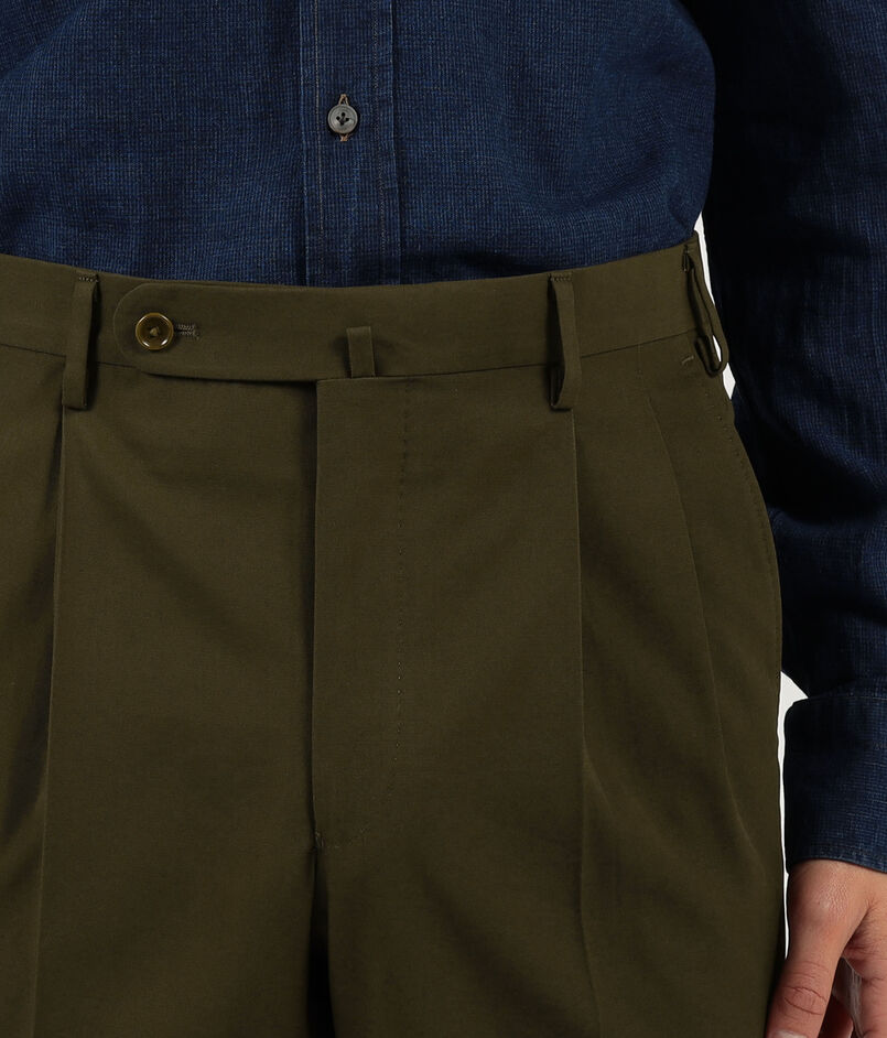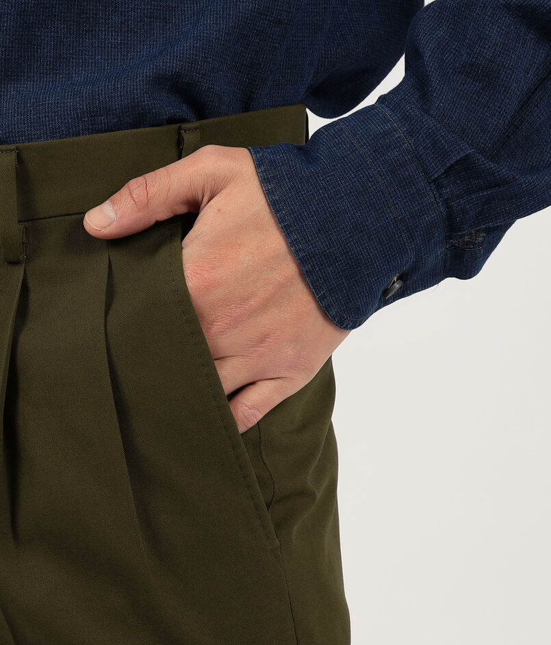 軽くてしなやかなコットン素材を使用した2プリーツスラックス。