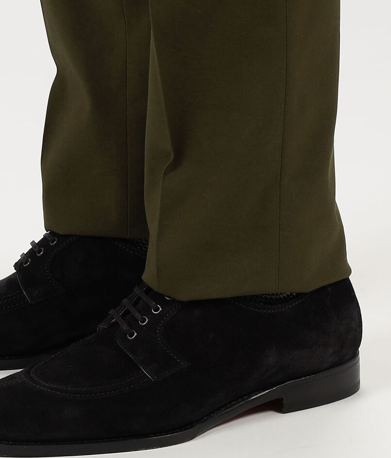 立ち姿の美しさを追求しながらも、スラックスとして可動域を確保した履き心地も両立した1本です。