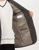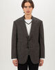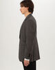 伊〈 LANIFICIO ROGNA(ラニフィーチョ・ローニャ)〉のウール、シルク、リネン混紡糸を使用した構築的なシルエットのジャケット。