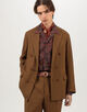 ドライタッチのウール、リネンにシルクをミックスした〈TOMORROWLAND PILGRIM〉レーベルの1プリーツパンツ。