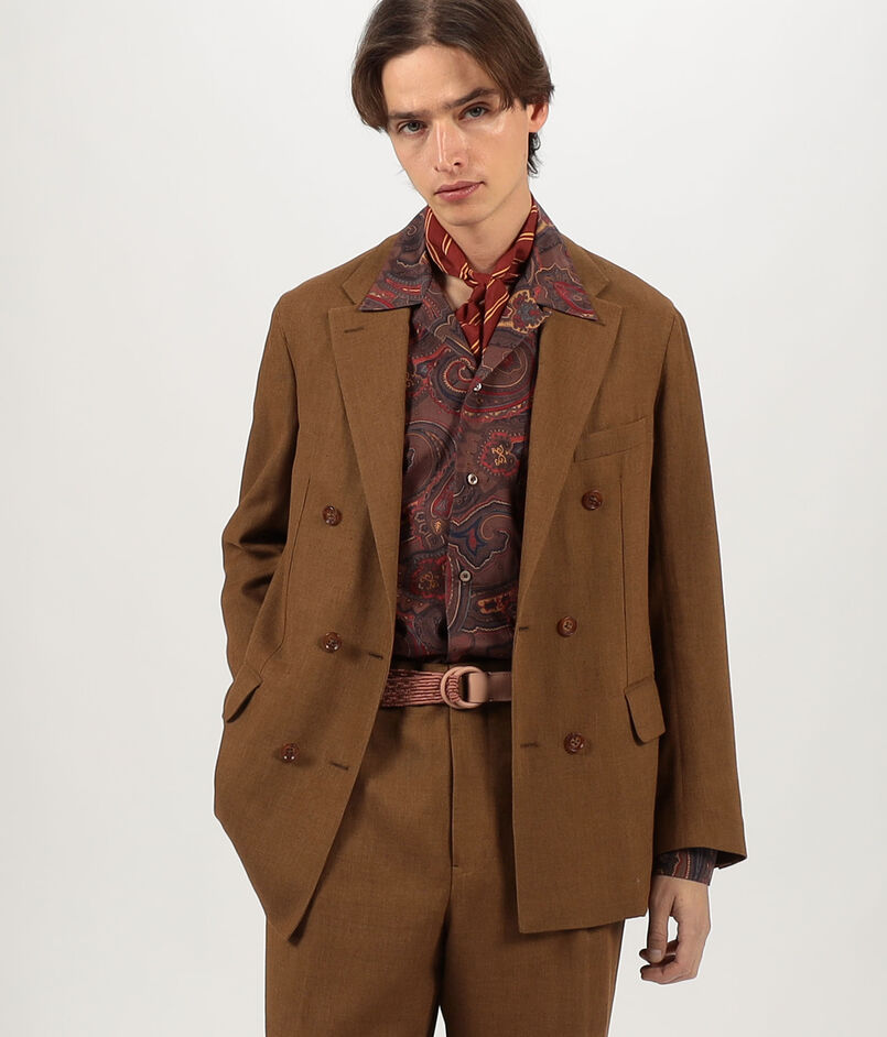 ウールリネンメッシュシャンブレー ダブルブレステッド6Bジャケット