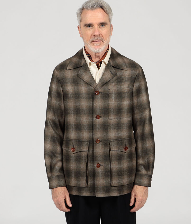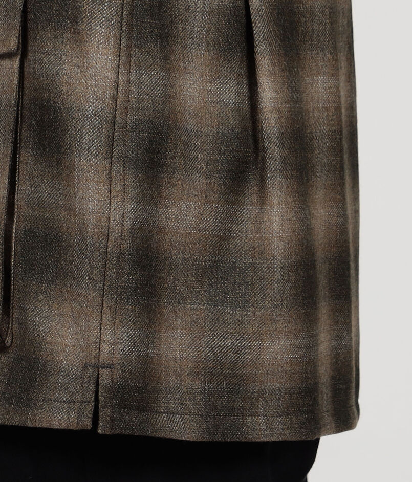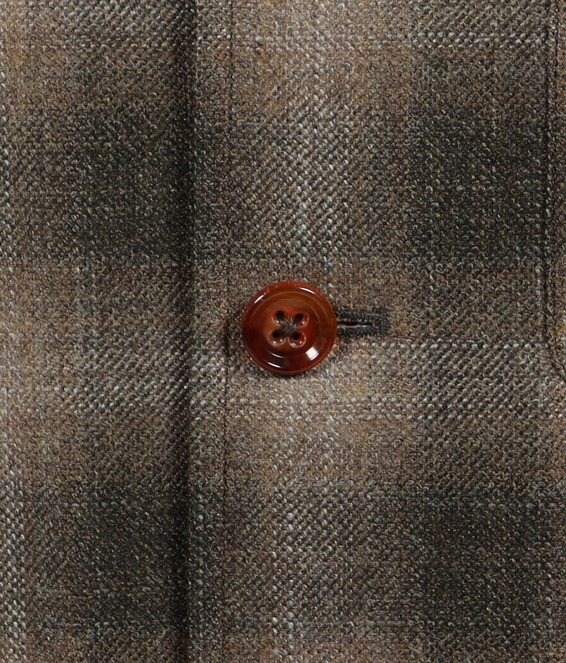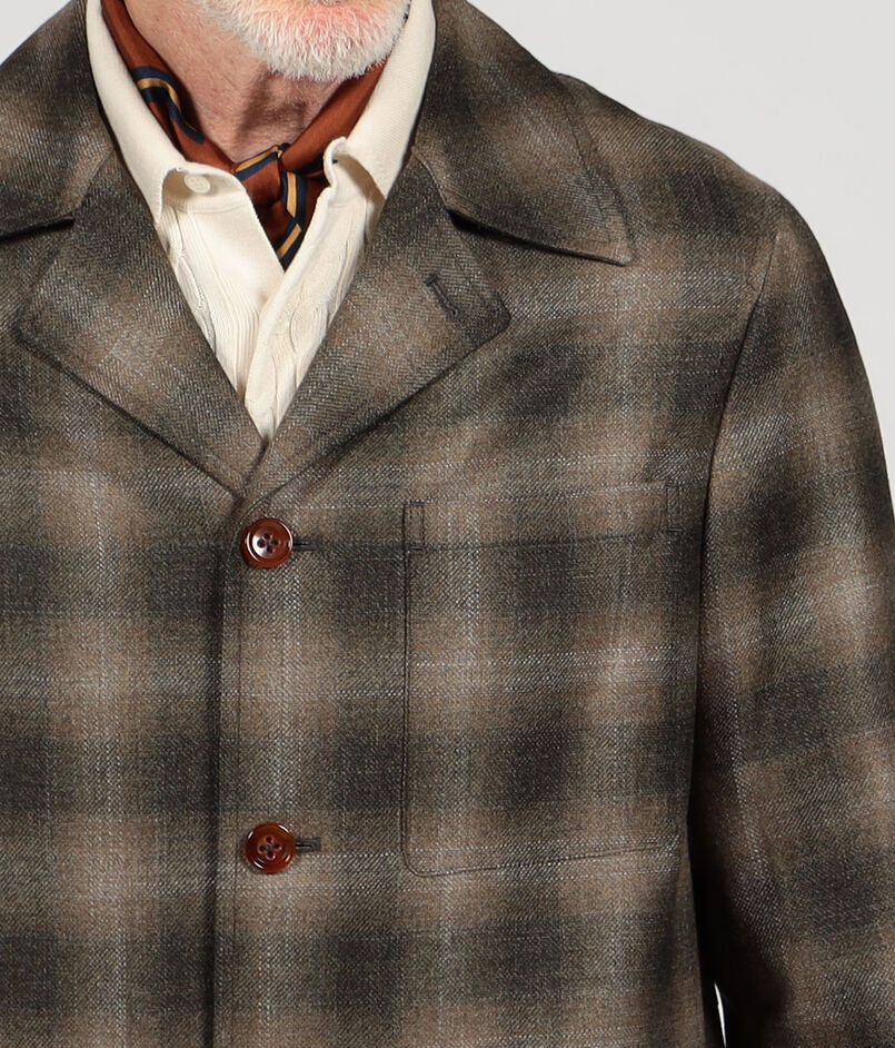 上質なウールにシルクとカシミヤをミックスしたラグジュアリーな素材に、アメリカンな印象のオンブレーチェックをのせたミックステイストが魅力なファブリックです。