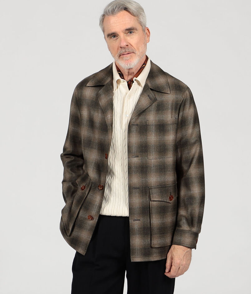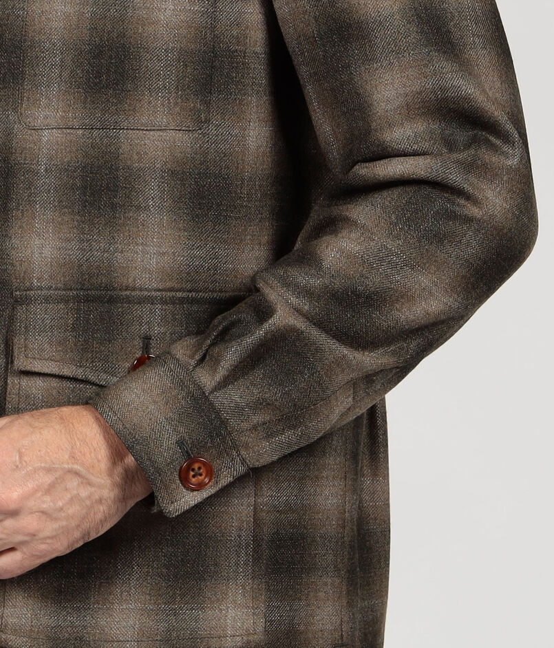 伊〈LORO PIANA(ロロ ピアーナ)〉社の立体感のある表情のウール、シルク、カシミヤのジャケットファブリック『SILK AIR』を使用したジャケット。