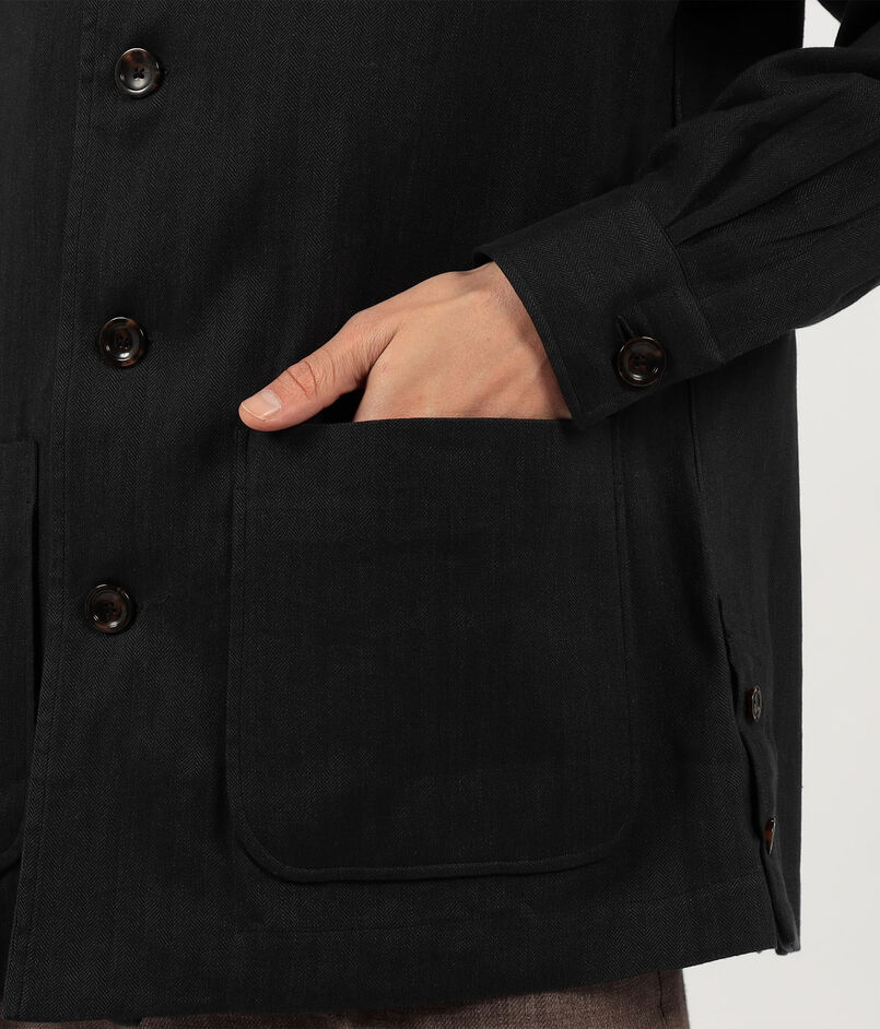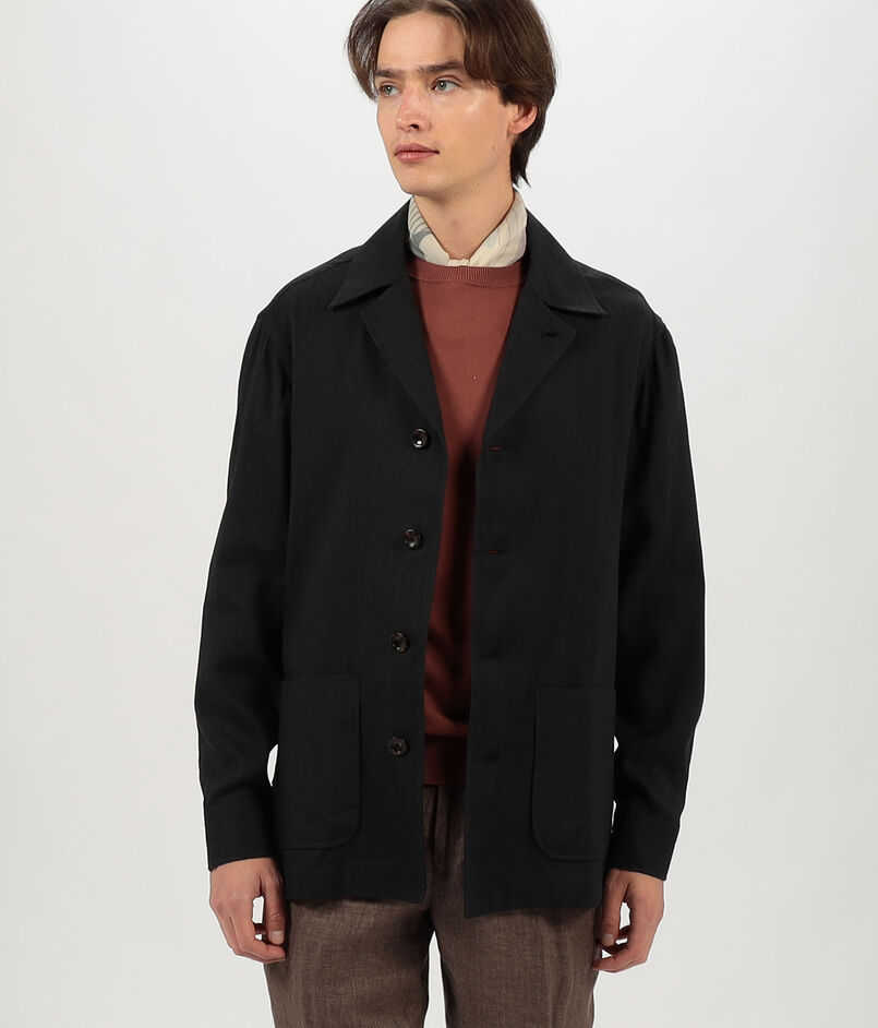 リネンコットンヘリンボーン ハンドカバーシャツブルゾン