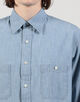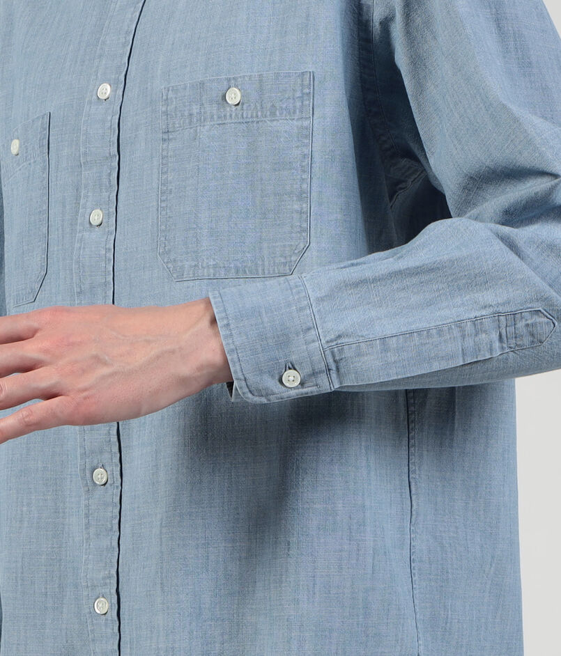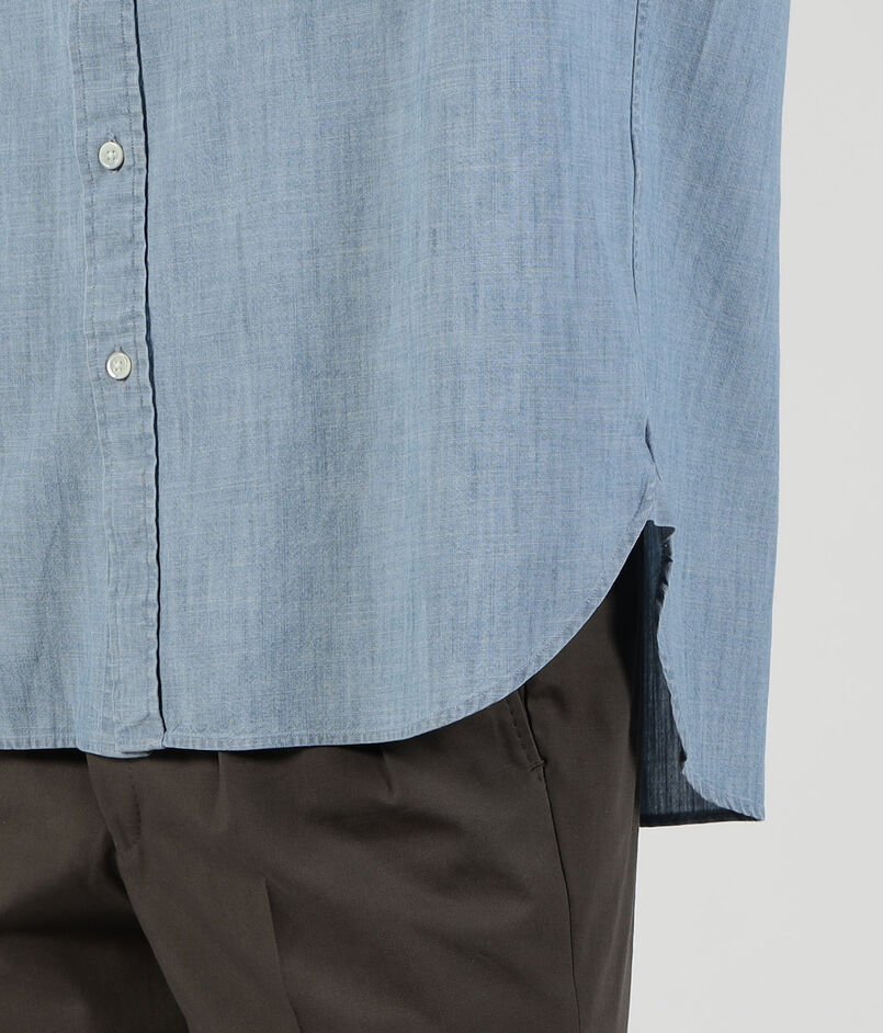 伊〈CANCLINI(カンクリーニ)〉社のBLUEシリーズの素材を使用したダンガリーシャツ。