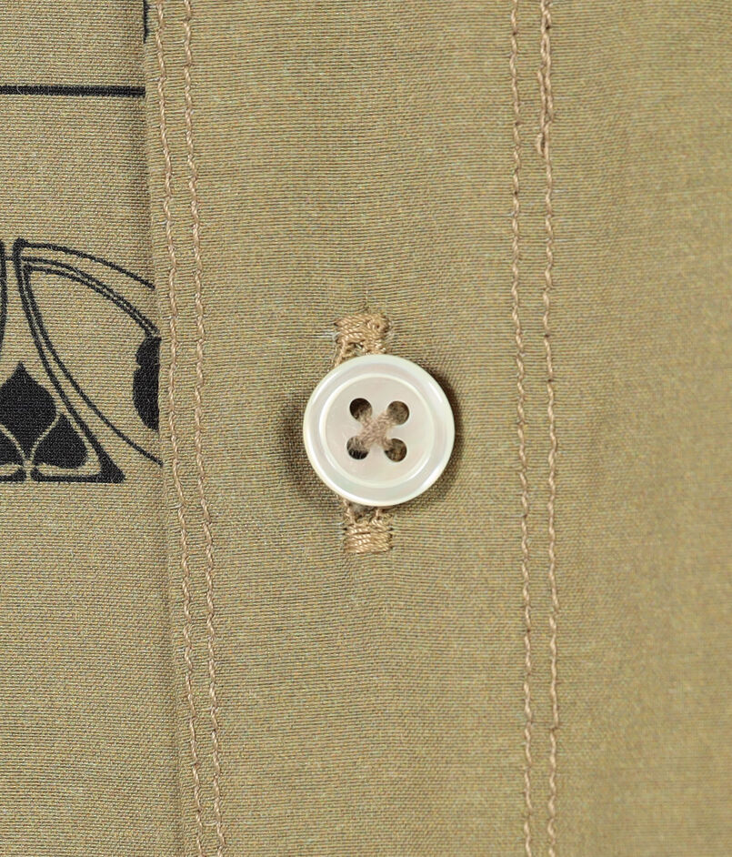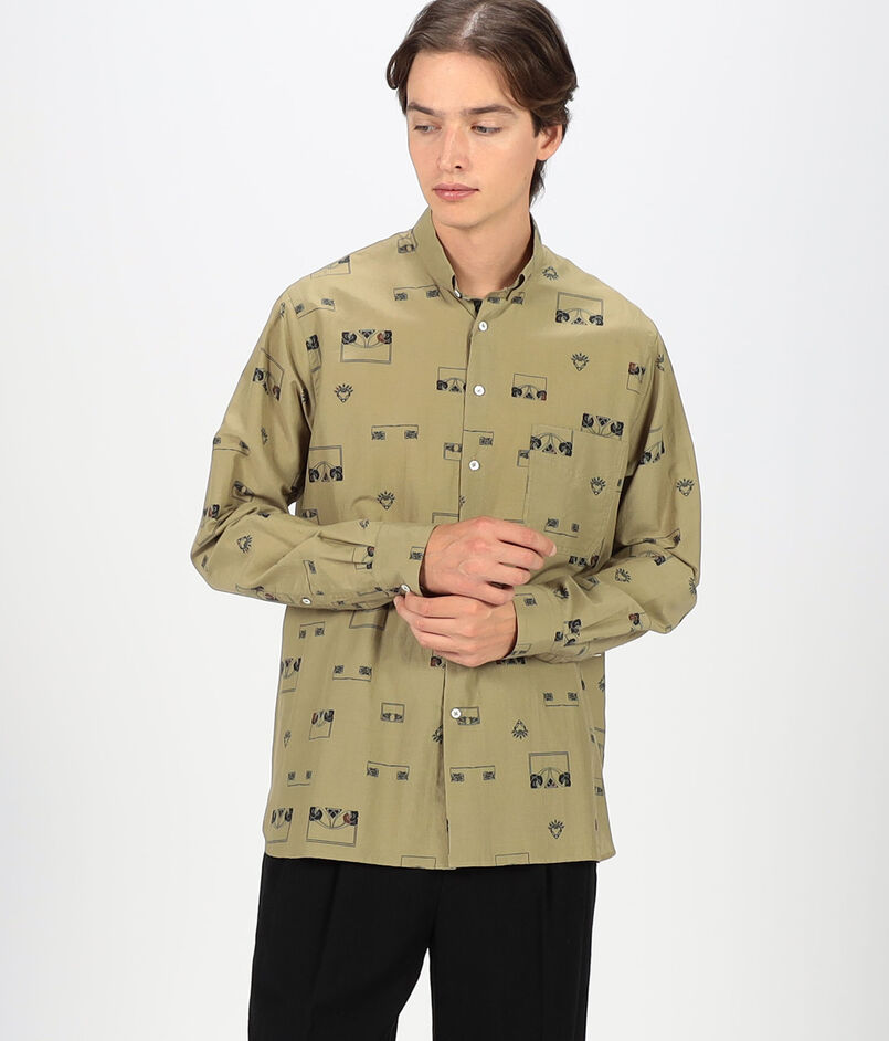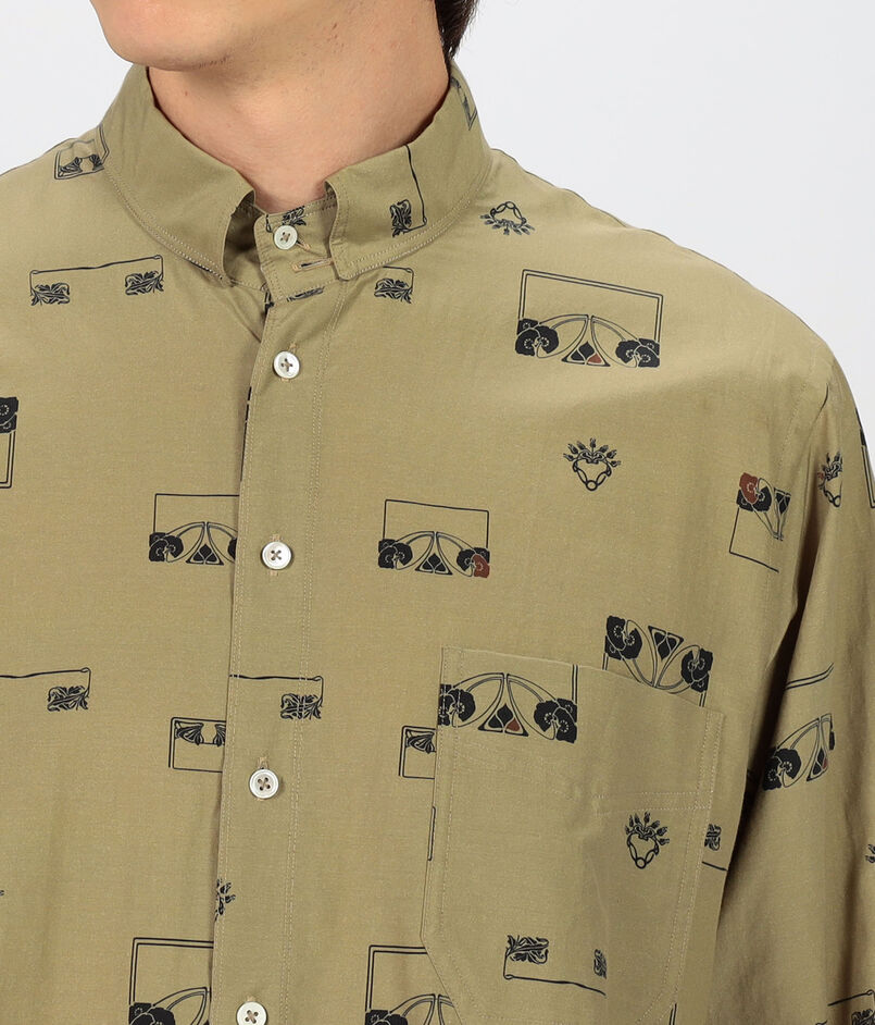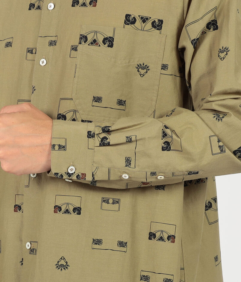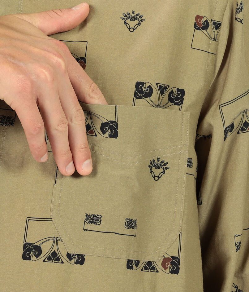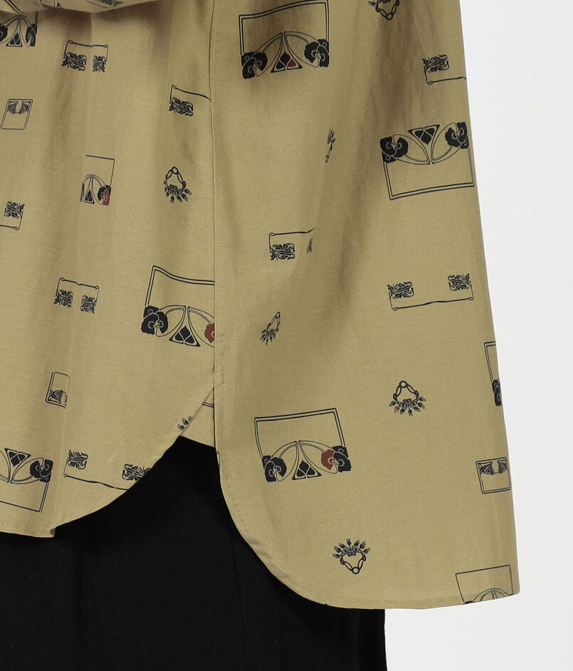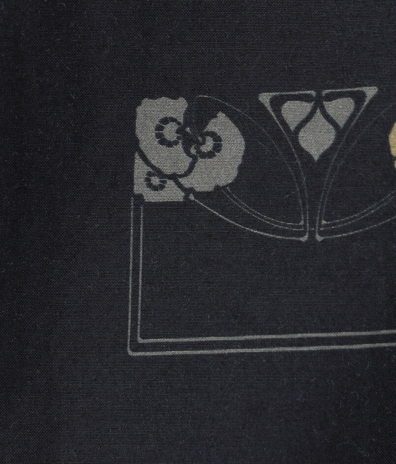 アール・ヌーヴォーの柄をプリントした生地に、衿をトンネル仕様のデザインにした他にはないデザインと柄が特徴です。