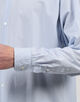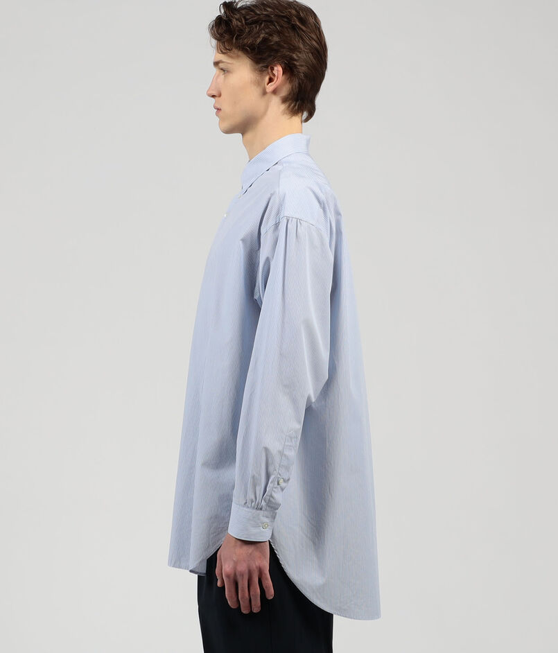 デザインは、クラシックなフレンチドレスシャツをベースに、ギャザー使いやステッチ、前立てや剣ボロの太さ、裾の形状などモダンな仕上がりになっています。