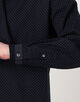デザインは、ブルゾンカラーシャツを採用し、シャツらしい衿型ではなく、ブルゾンやアウターに用いられる衿型をシャツに仕上げています。