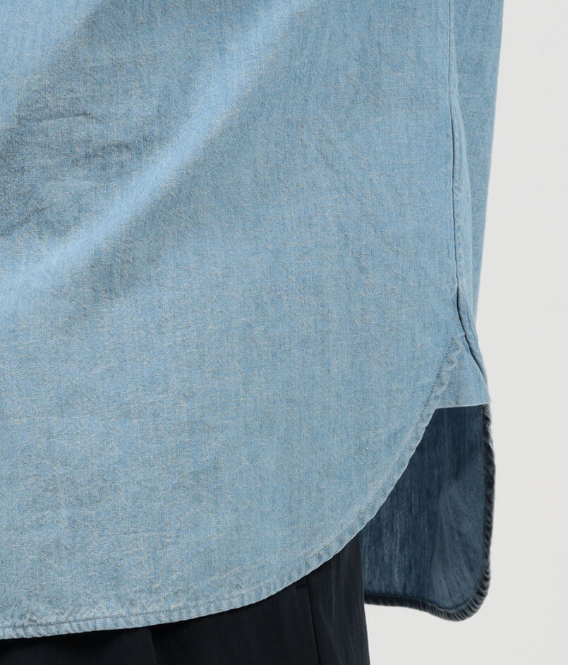 伊〈CANCLINI(カンクリーニ)〉社のBLUEシリーズの素材を使用したダンガリーシャツ。