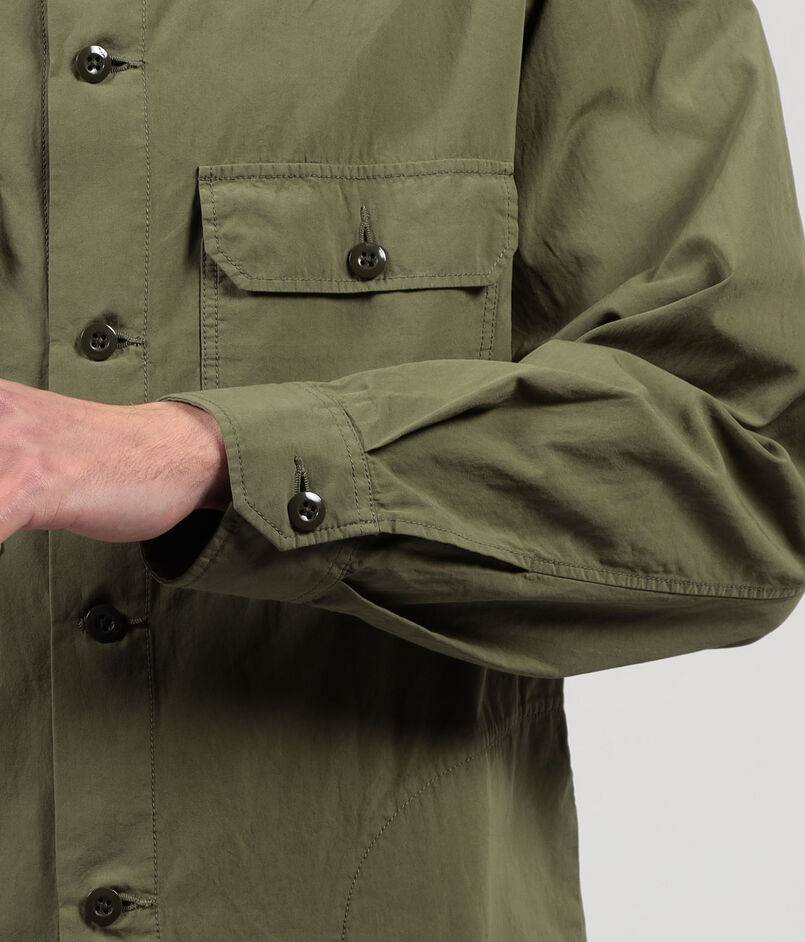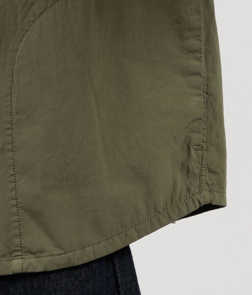 程良くボリュームを持たせたボックスシルエットに二枚袖の立体感のある袖付けのCPOシャツに仕上げました。