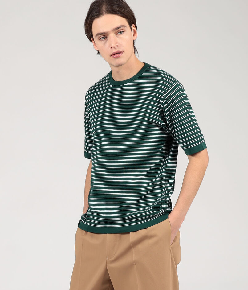 高級綿として名高いシーアイランドコットンを使用した半袖クルーネックニット。