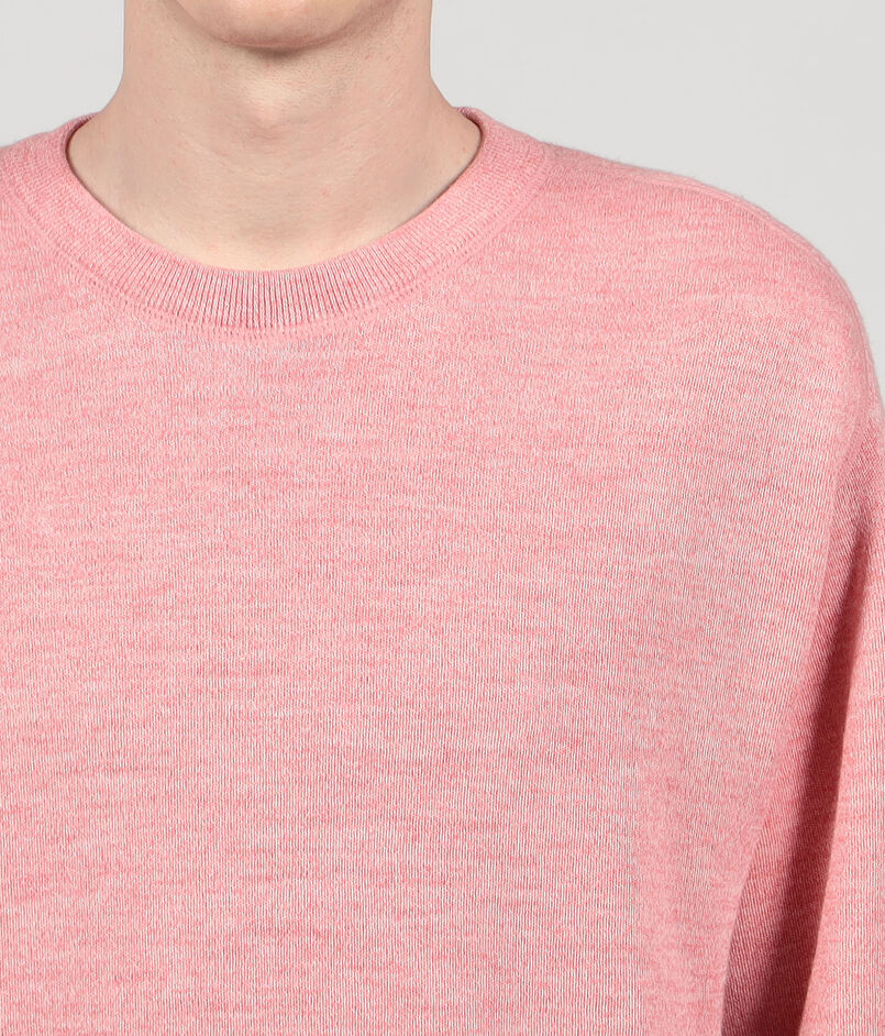ウールの持つ吸湿性、保温性により夏は涼しく、冬は暖かいという体温調節機能と、天然繊維の中で最も強強度のラミーの持つ吸湿性、速乾性によって”汗をかいても肌に密着しにくく、涼しい快適性が融合した「1年を通して快適に着ることのできるシーズンレスニット」です。
