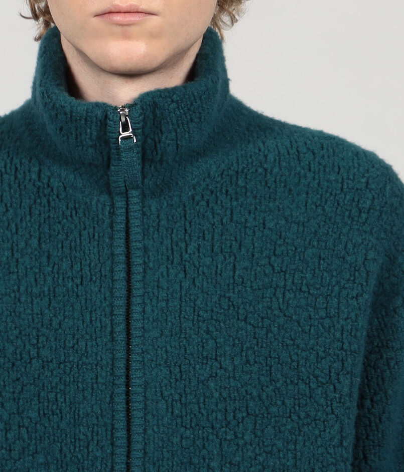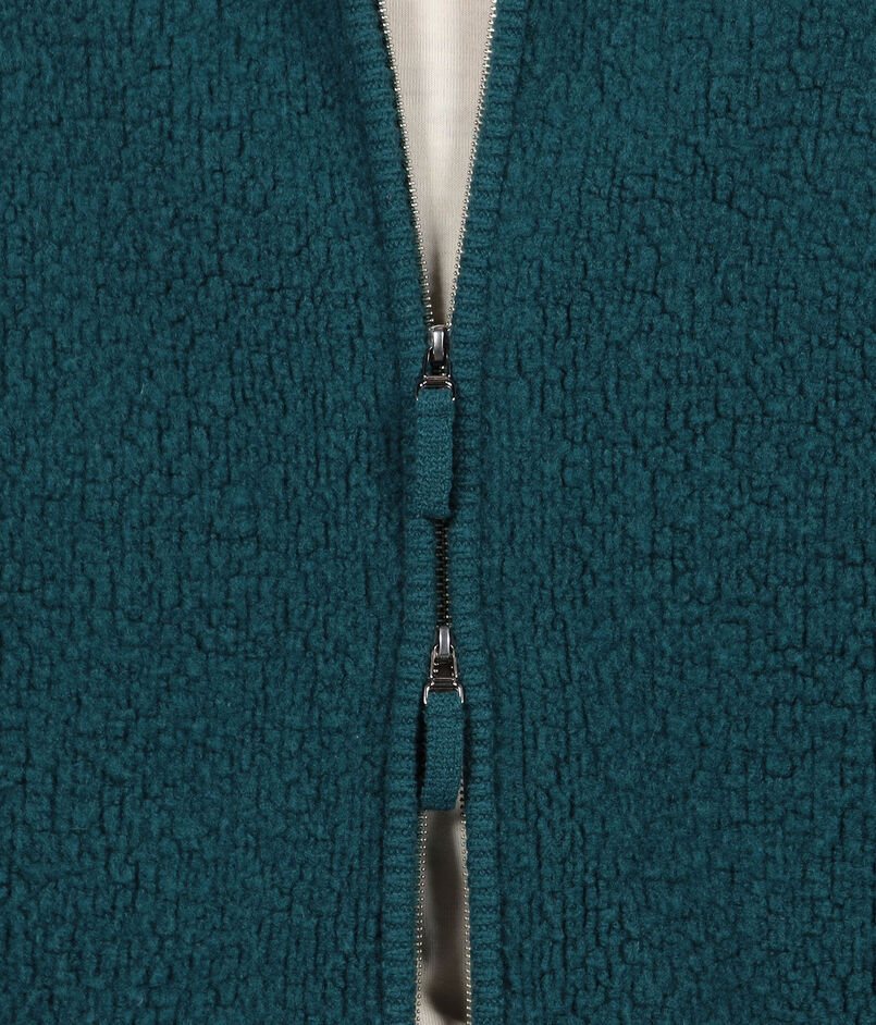 カシミヤブレンドのウルトラファインメリノウール糸を使用したニットブルゾン。