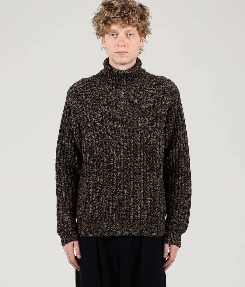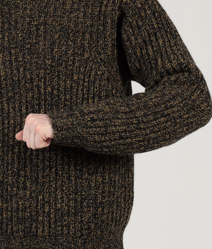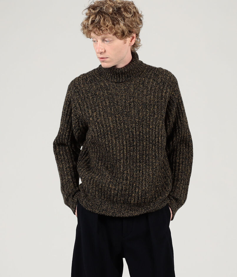 3色のメランジカラーが、ニットらしい奥行きと存在感のある表情を生み出し、スタイリングのアクセントお勧めです。