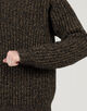 かなり肉厚な両畦編みで、すこし衿周りをゆったりとさせたオフタートルネックデザインに仕上げました。