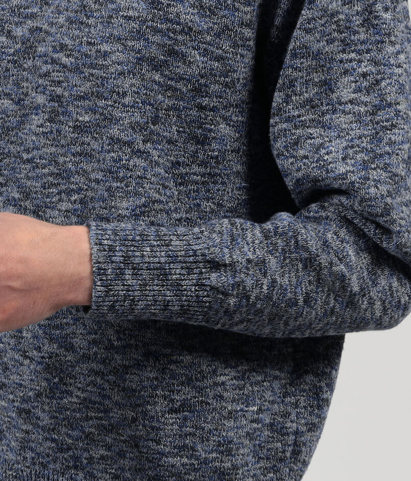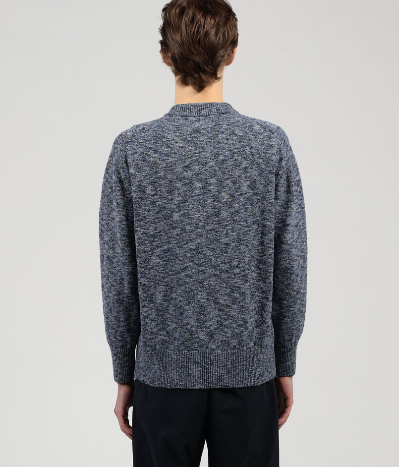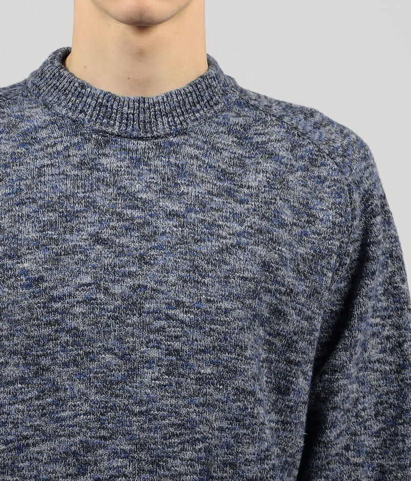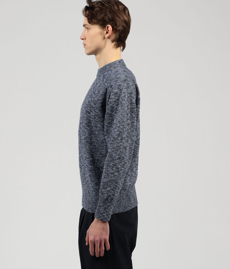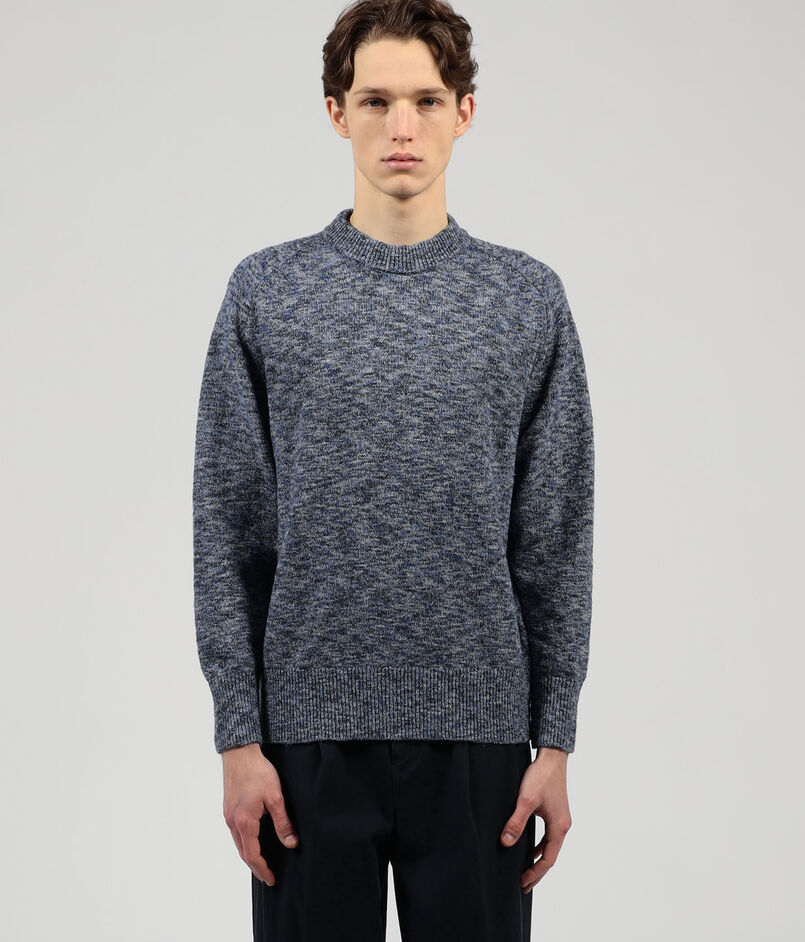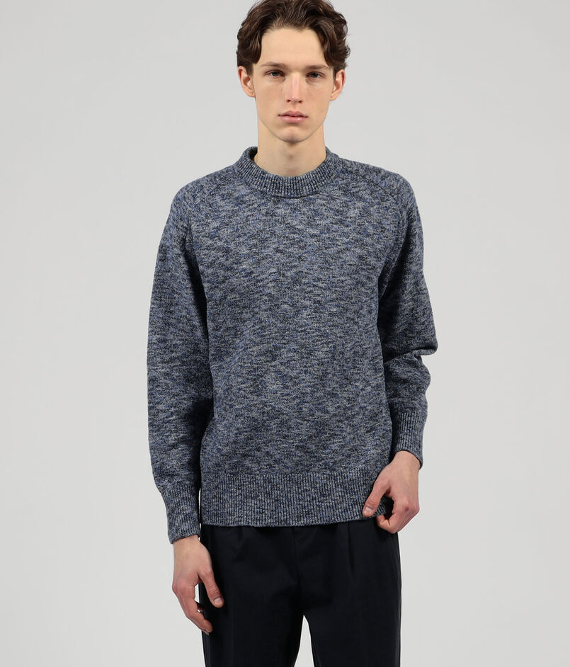 表情豊かな糸で編み上げた、ミドルゲージのクルーネックニット。