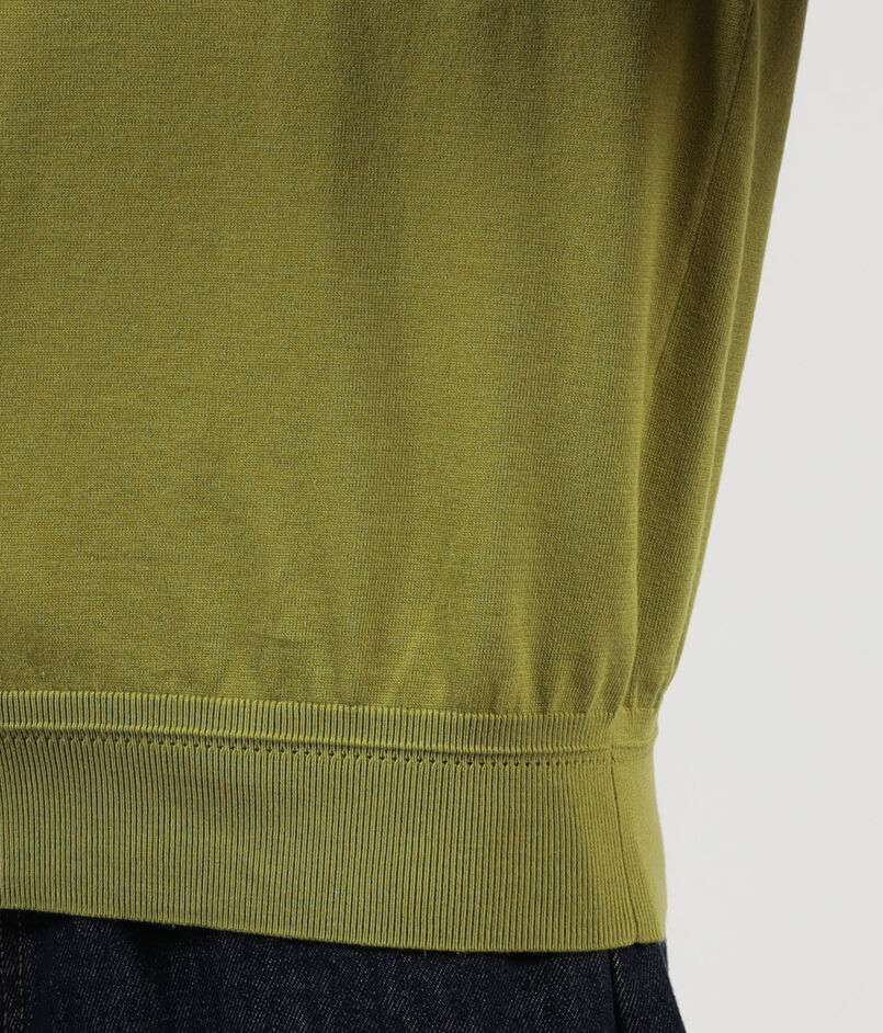 上質な糸を、ハイゲージ編み機で細かく繊細に編み上げ、きれいな表情を持つ着合わせのしやすい軽いニットに仕上げました。