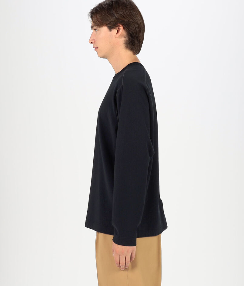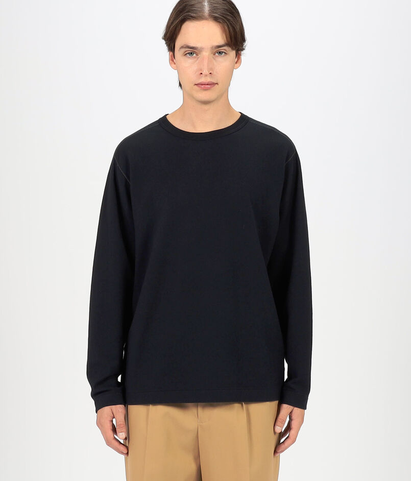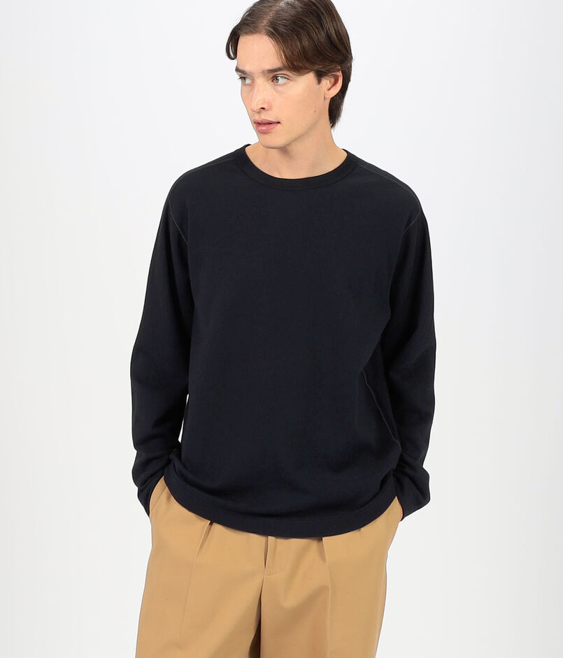 デザインは、スウェットを思わせるようなクルーネックで、Tシャツ以上トレーナー未満といった生地厚から、温度調節の難しい初春、初秋のスウェット代わりとしても、真冬のインナーとしてもお使い頂けます。