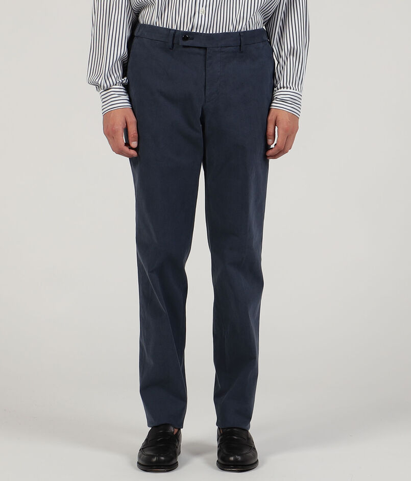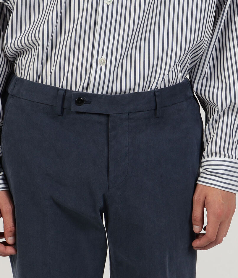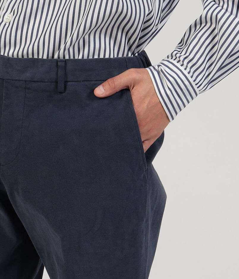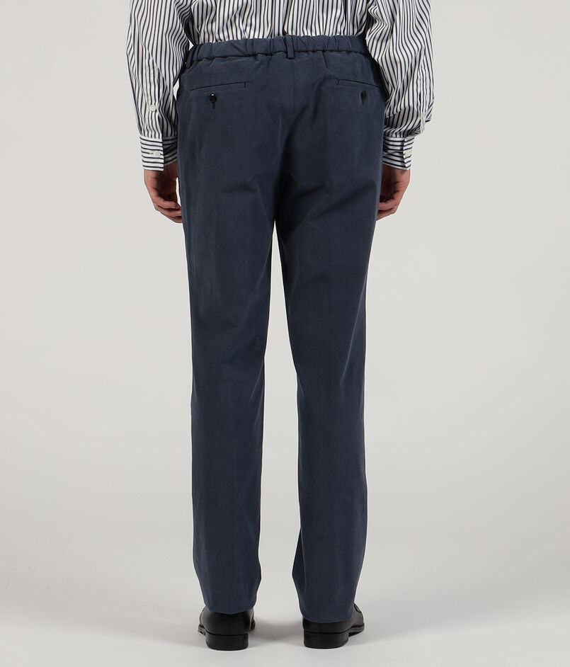伊〈SONDRIO(ソンドリオ)〉社の秋冬シーズンの定番素材であるストレッチチノを使用したバックシャーリングパンツ。