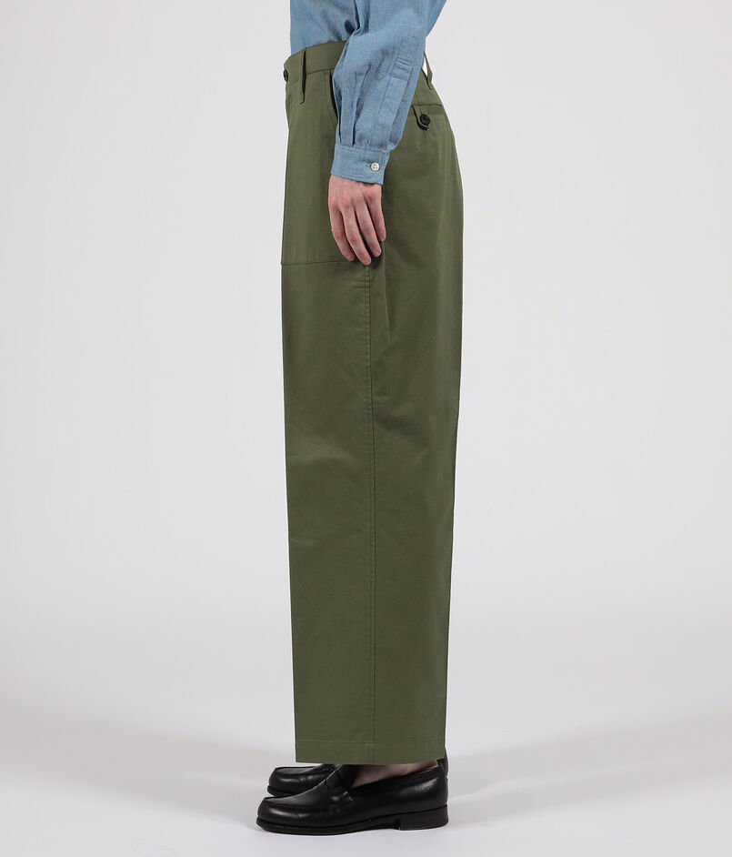 腰裏をマーベルト仕立てにしてにするなど、ワークパンツというよりはきれいな印象に仕上げました。