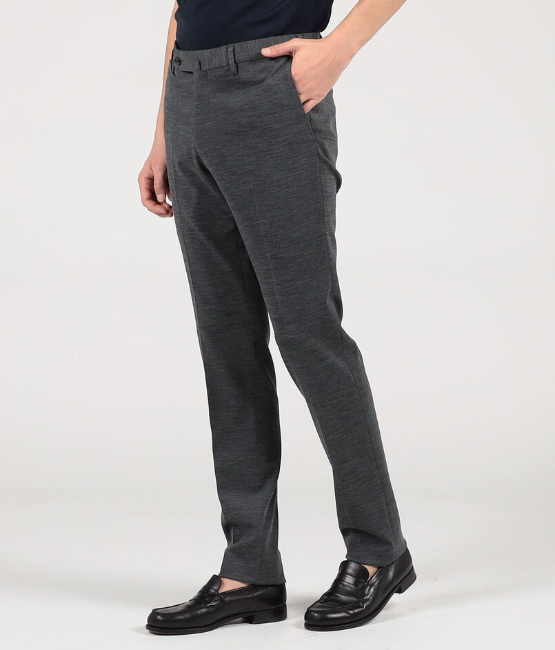 伊〈DONDI(ドンディ)〉社の『WOOLFINE』を使用したスリムストレートパンツ。