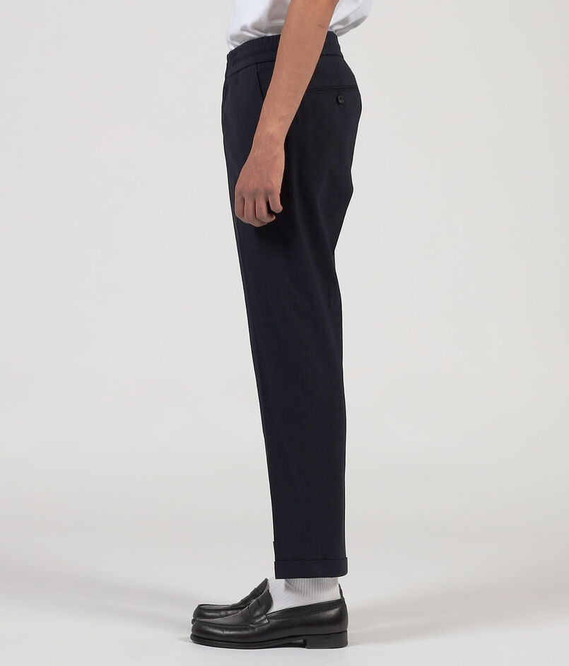 好評を得ている細身のテーパードシルエットはそのままに、コンフォートな素材とデザインを組み合わせました。