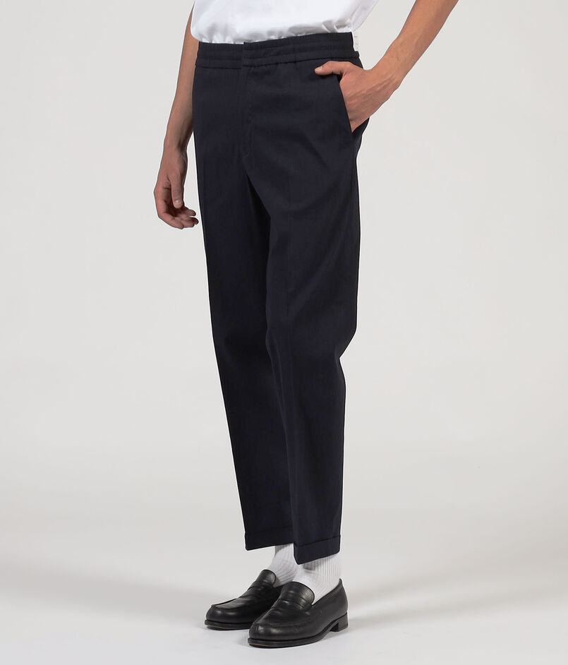 〈TOMORROWLAND〉の定番のスリムテーパードパンツをイージーパンツ仕様にアレンジしました。