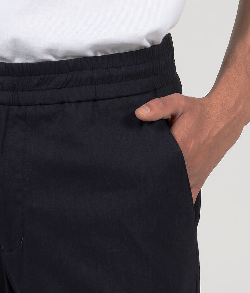 清涼感のあるリネンに肌触りの柔らかく気持ちの良いレーヨンを掛け合わせた生地は、ストレッチ性と、涼しく肌触りの柔らかく良い触感を兼ね備えた夏に最適なパンツです。