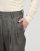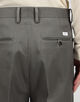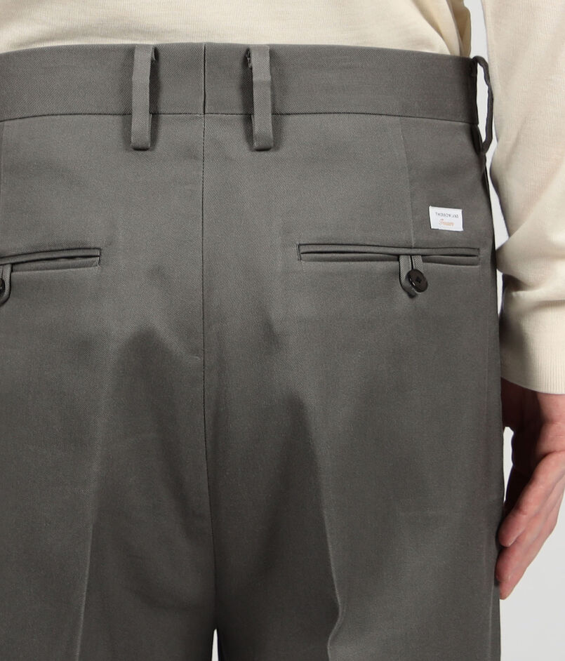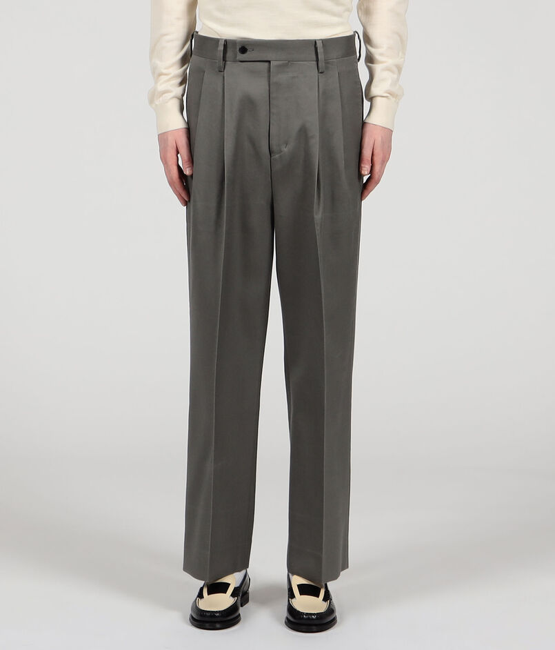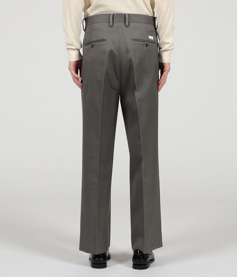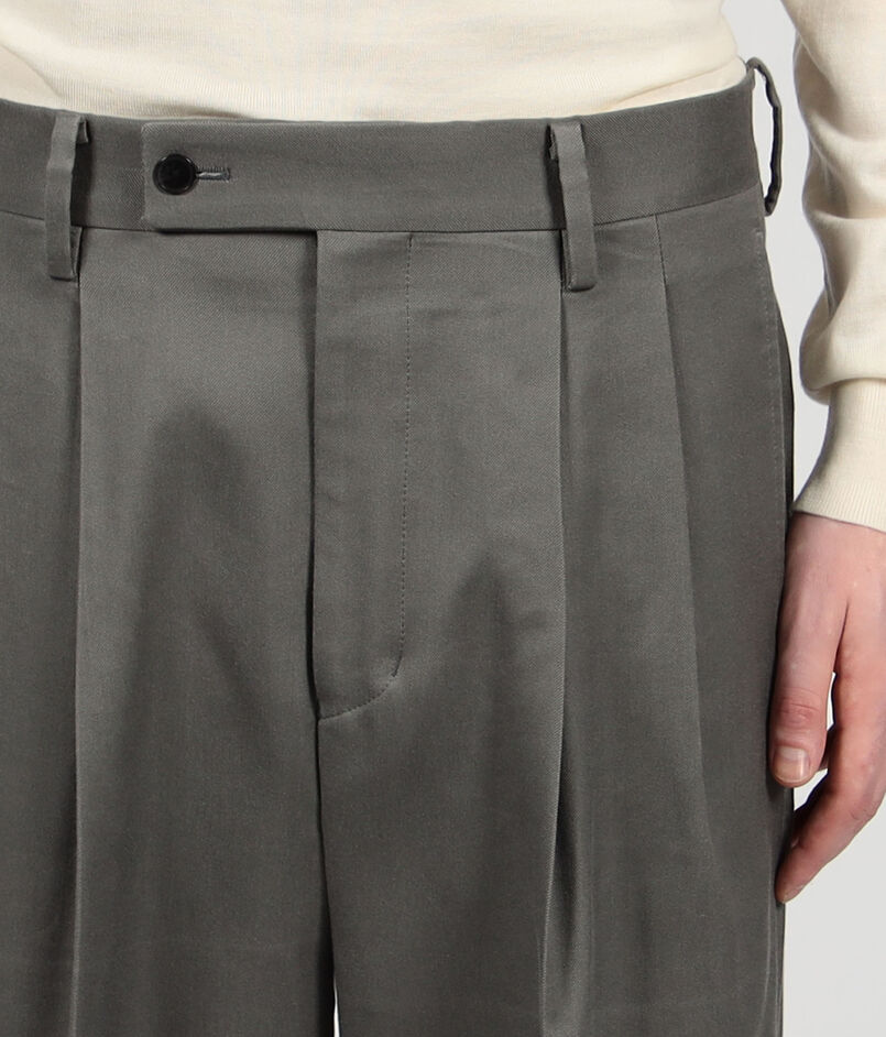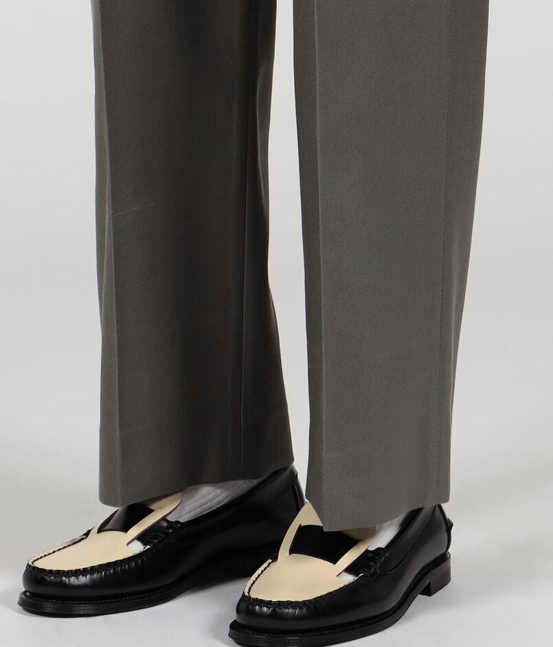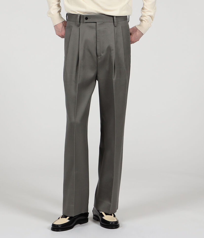 デザインは、定番で展開をしている2プリーツワイド型で、ドレスパンツのディテールを持ちながら、カジュアル感のある太いシルエットが特徴です。