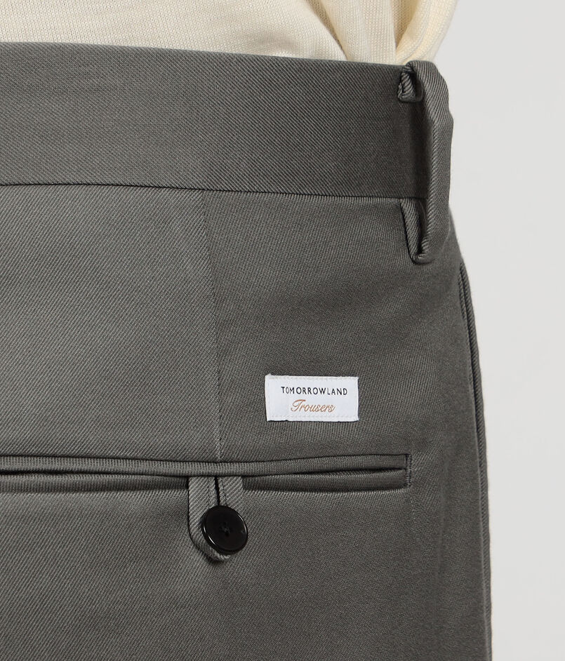 肌触りが良くドレープ性の強いヴィスコース素材にコットンを混ぜ合わせた素材のスラックス。