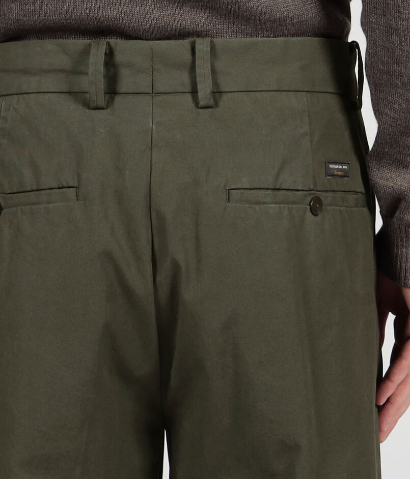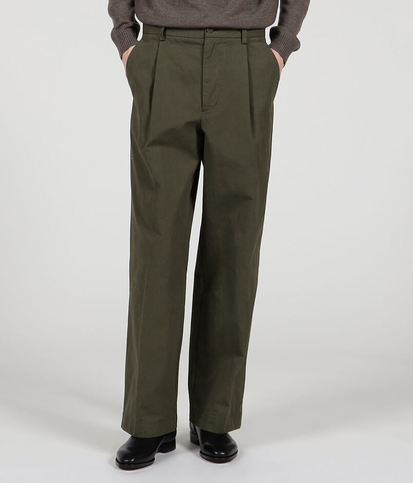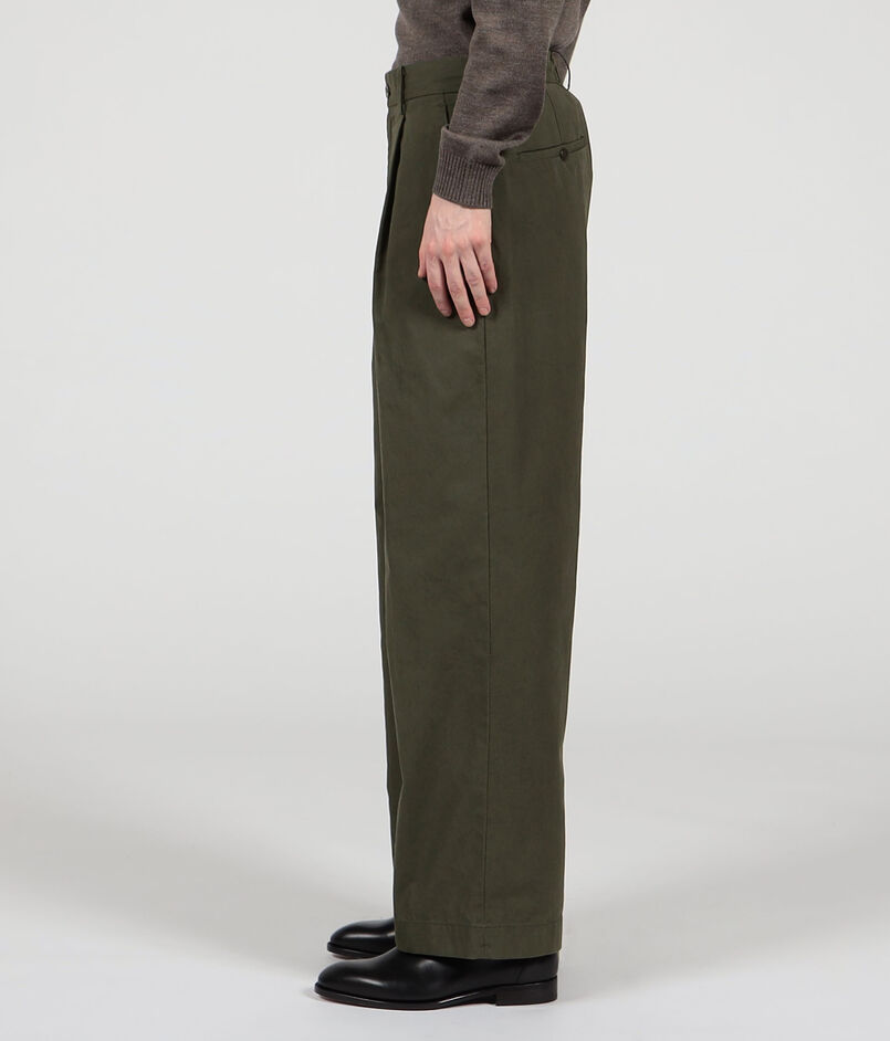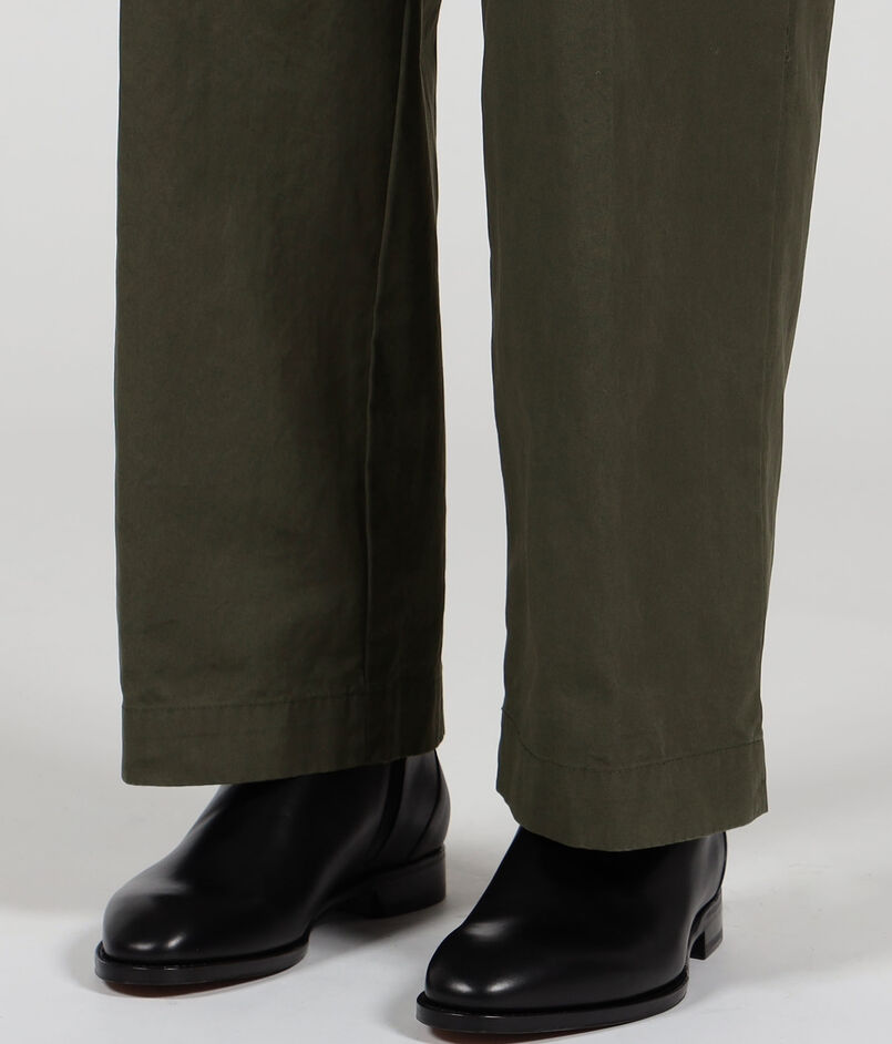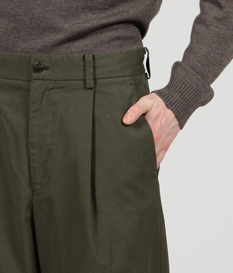 ワークウェアに使われるようなオックスフォード生地を使用した1プリーツパンツ。