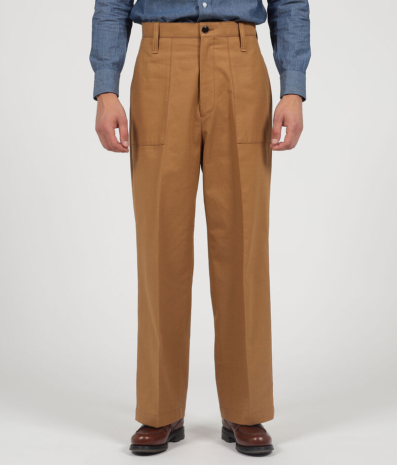 伊〈SONDRIO〉社のDRILL CLOTHを使用したベイカーパンツ。