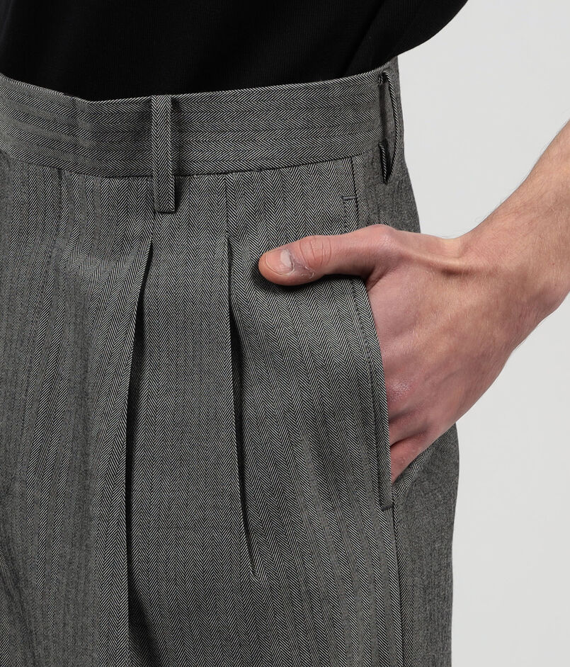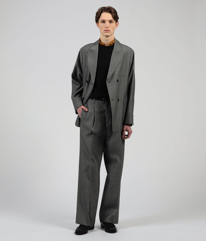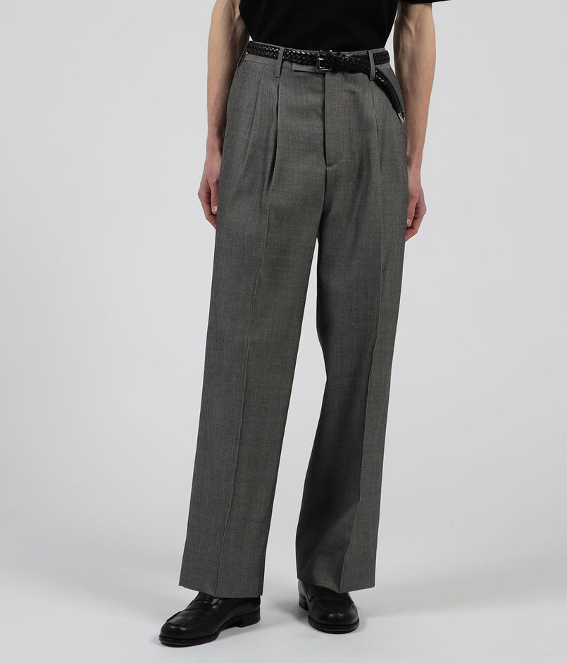 上質かつ繊細なウールにハルト加工を施した素材の2プリーツワイドパンツ
