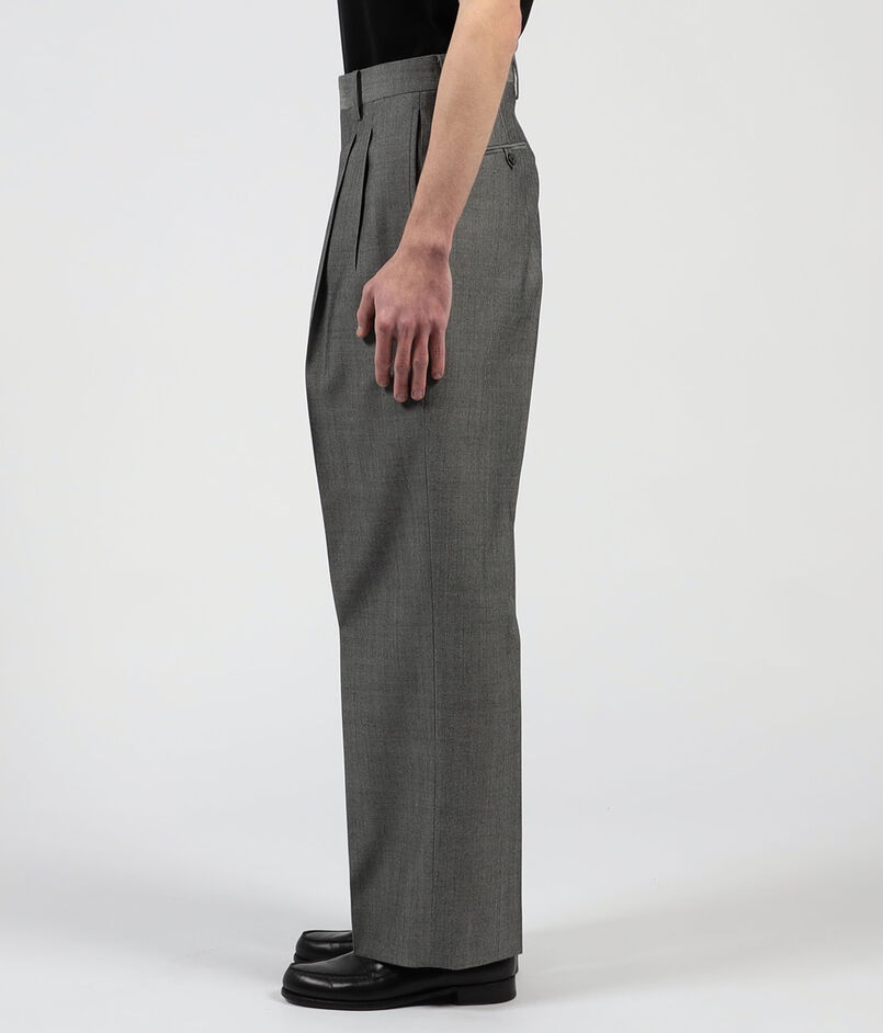 上質かつ繊細なウールにハルト加工を施した素材の2プリーツワイドパンツ
