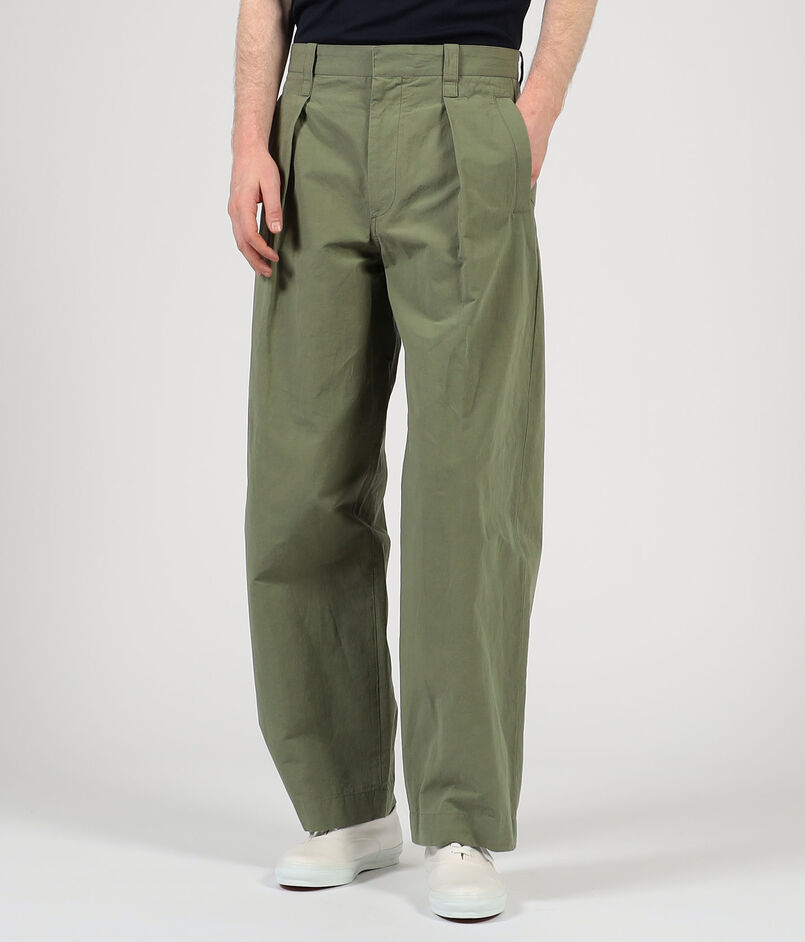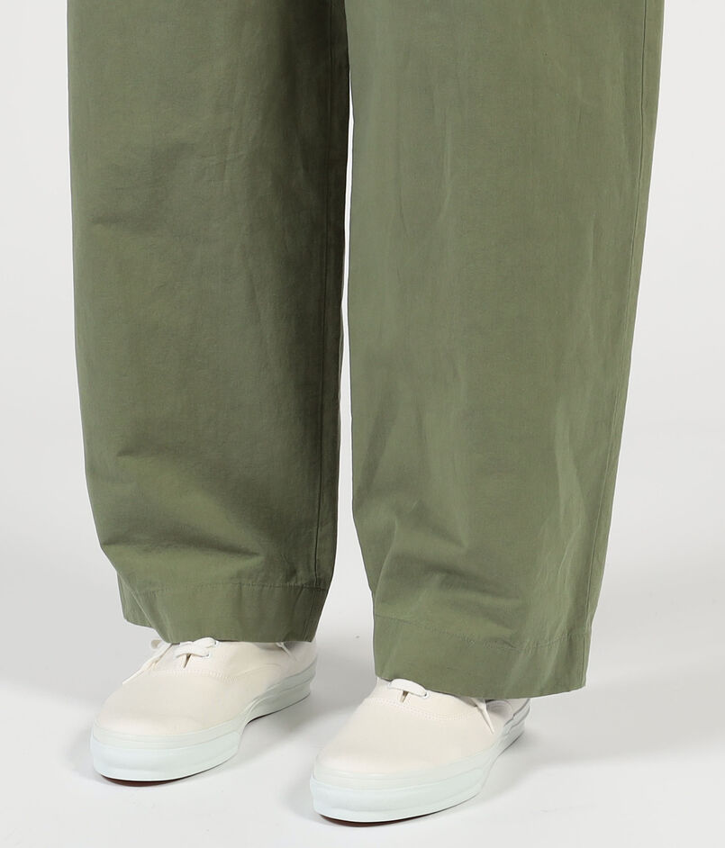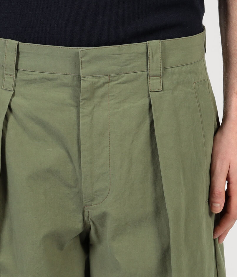 コットンリネン混紡の糸を使用し、高密度に織り上げた生地を使用したパンツ。