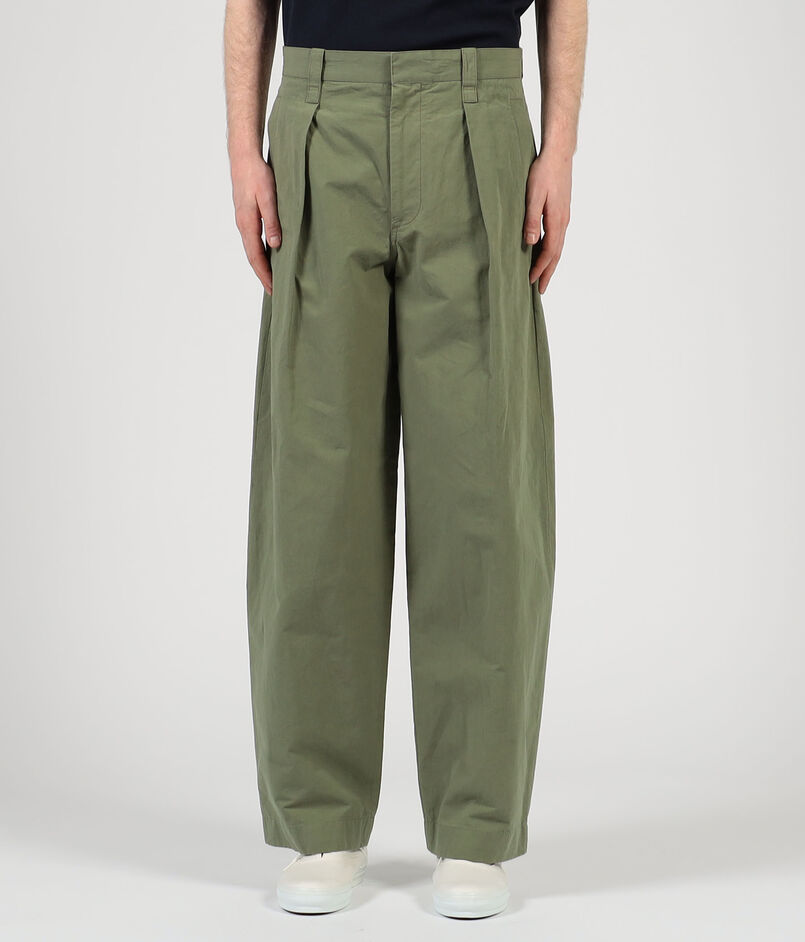 バレルパンツらしいスッキリとした腰回りのシルエットはそのままに、ヒザにかけて外脇が膨らみ裾にかけてまた絞まるというカーブラインを描く特徴的なデザインに仕上げています。