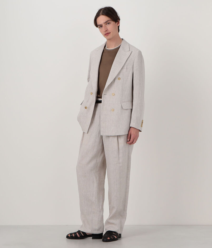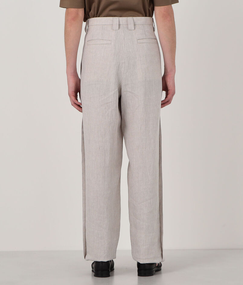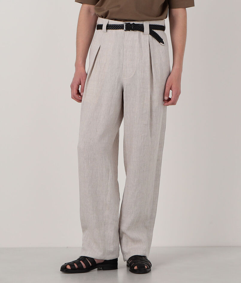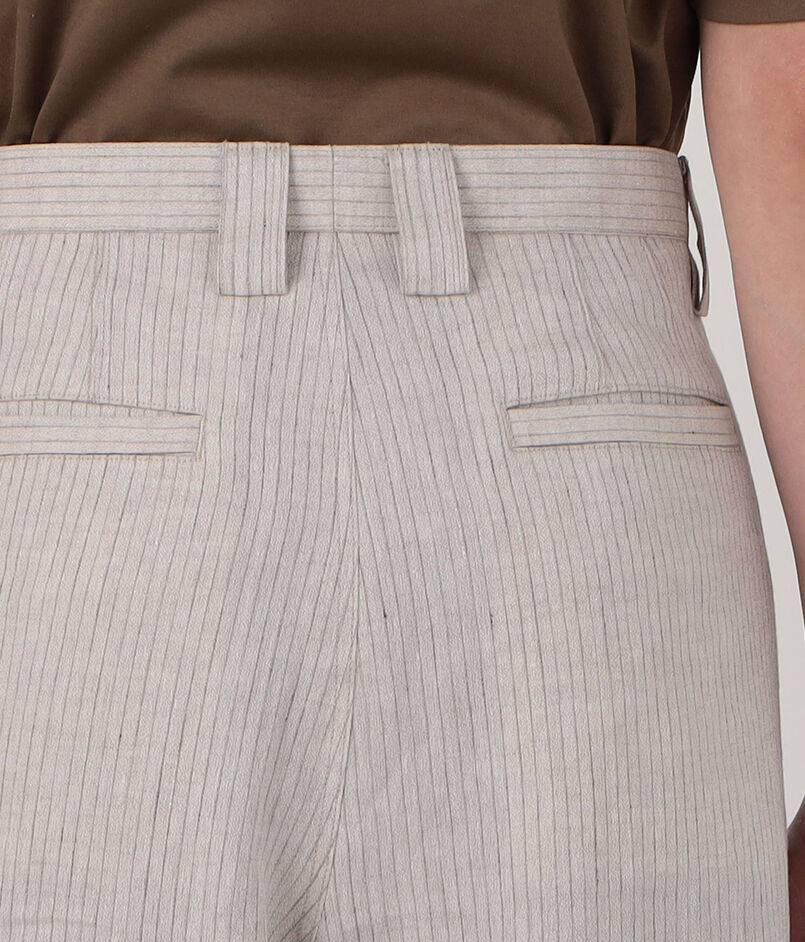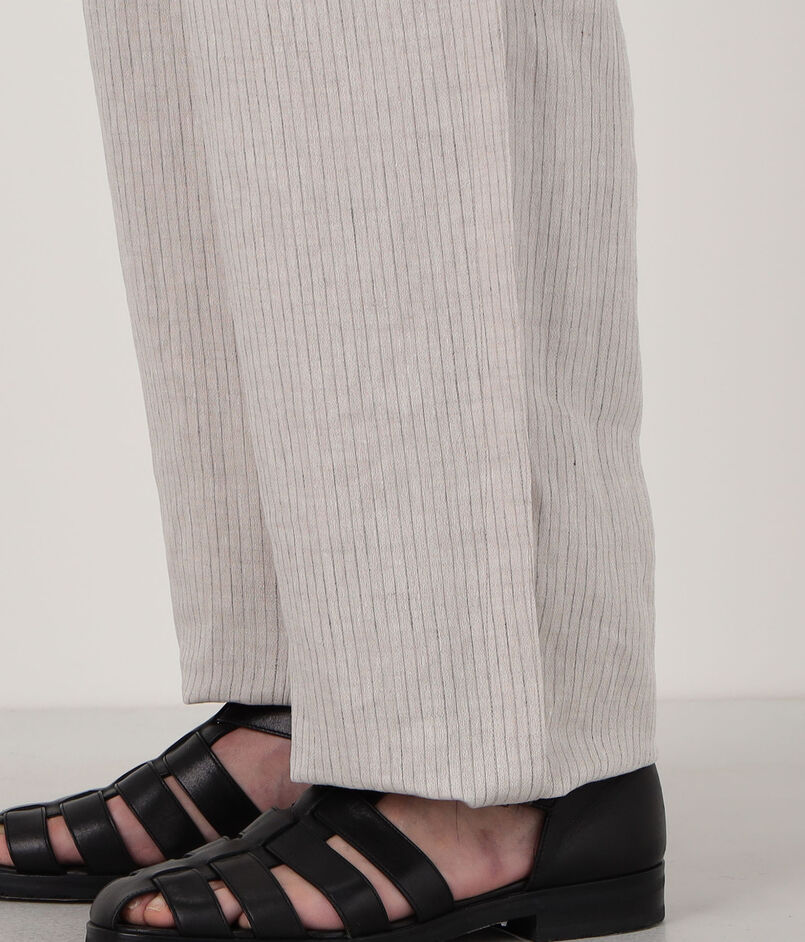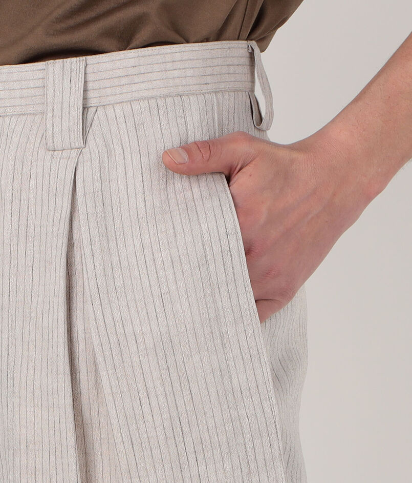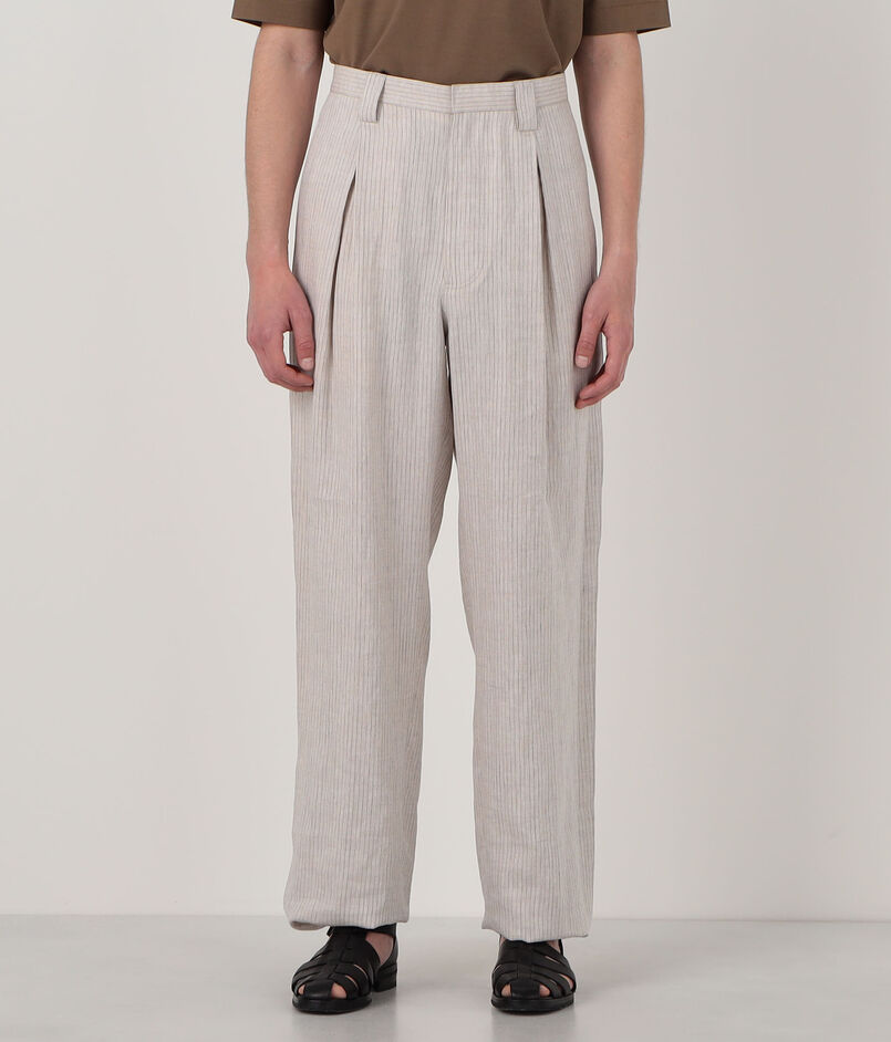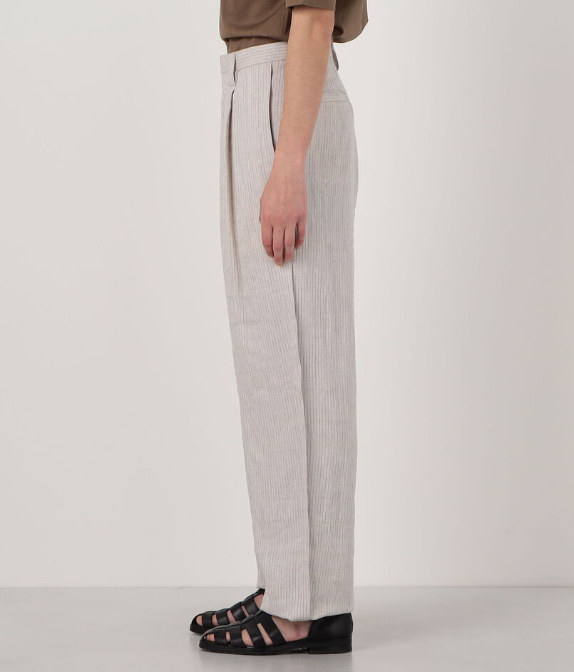 リネンアムンゼンストライプ 1プリーツテーパード ペグトップパンツ