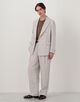 リネン100%のアムンゼン生地を使用した1プリーツのペグトップパンツ。