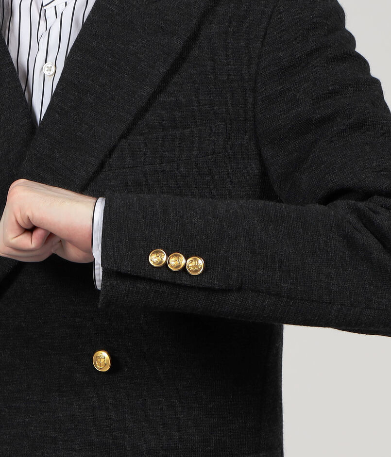 また、金ボタンには1812年創業のボタンブランド〈WATERBURY BUTTON(ウォーターバリーボタン)〉を採用。