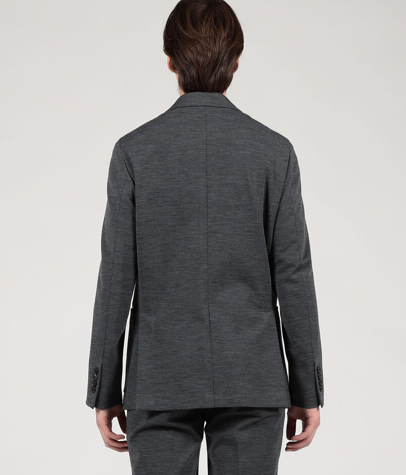 ニット素材ながら、胸廻りに毛芯を入れてほど良く構築感を持たせたソフトコンストラクションなジャケットに仕上げています。