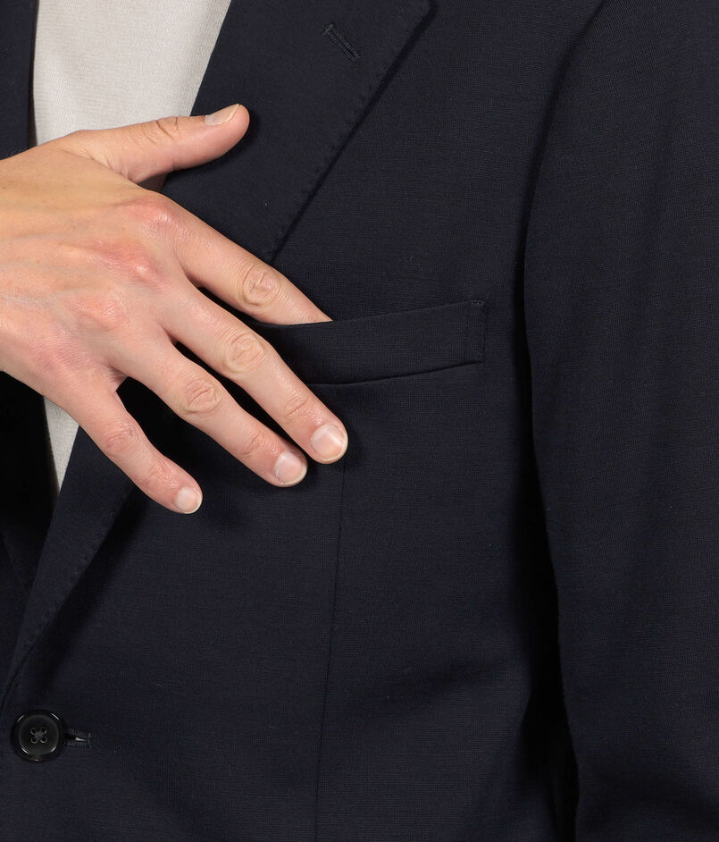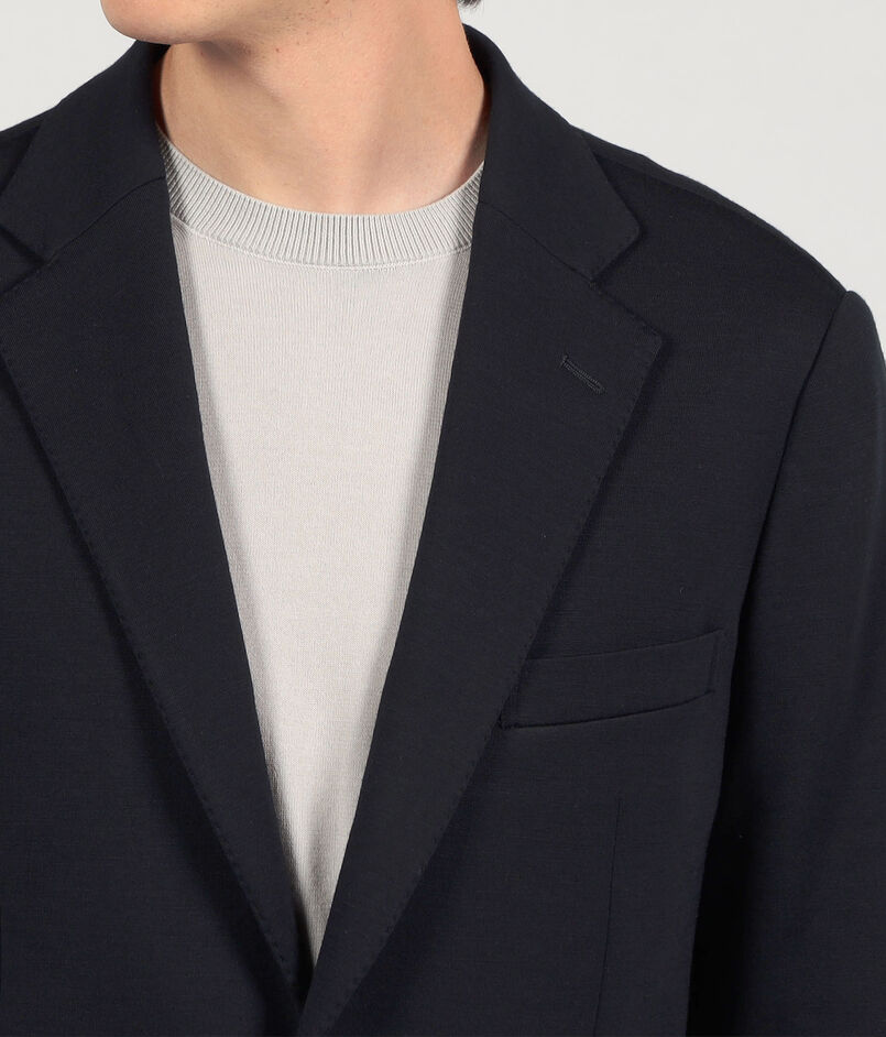 毛芯仕立てにして柔らかな構築感とコンフォートな着心地を両立させた着心地が上質感を表現しています。