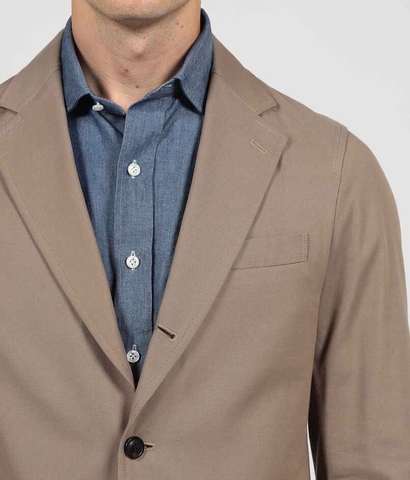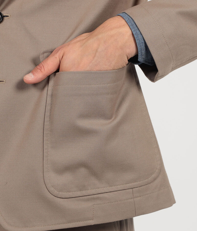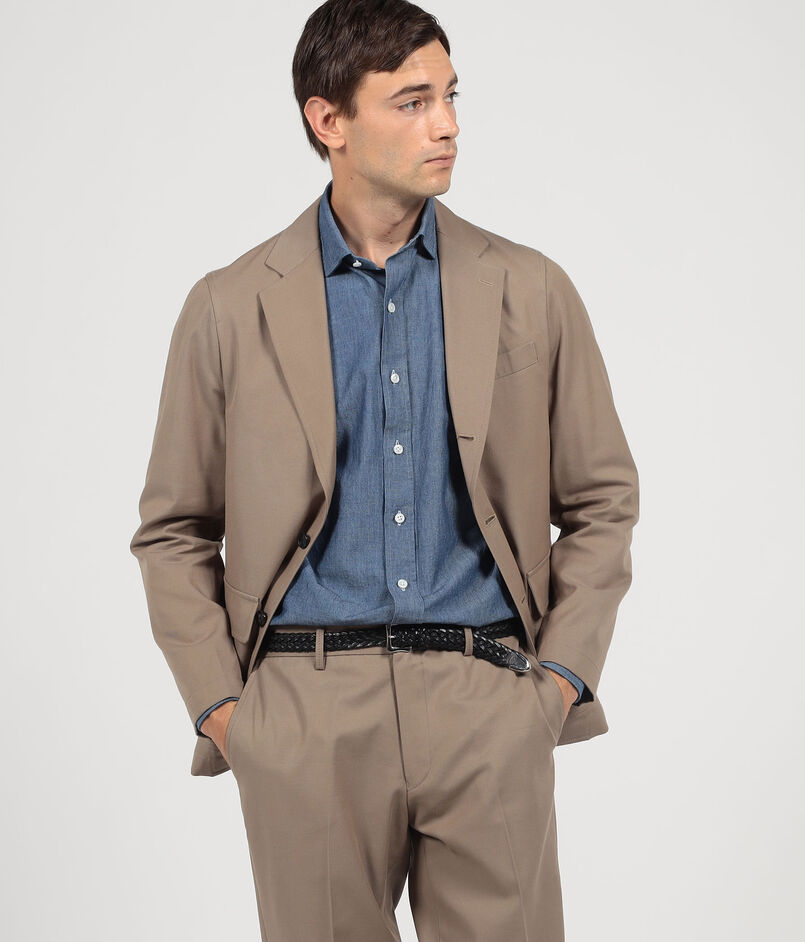伊〈SONDRIO〉社のウール、コットン混紡素材を使用した3つ釦段返り仕様のジャケット。